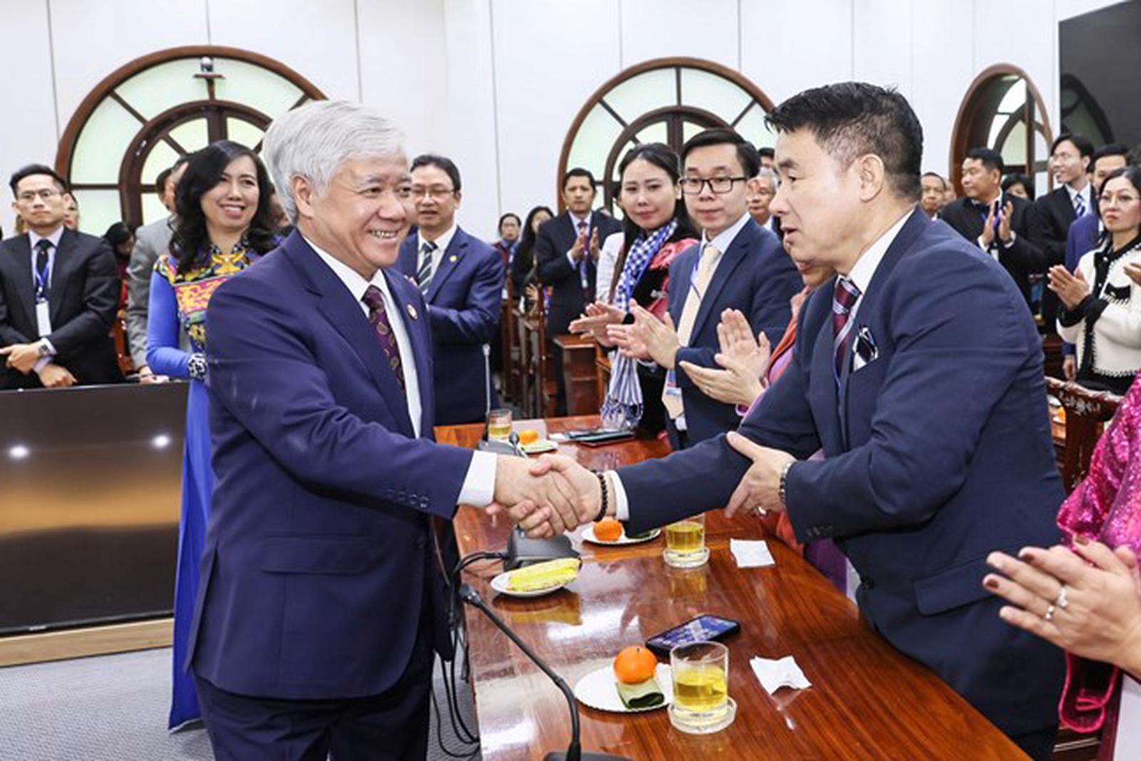Chủ tịch MTTQ Việt Nam Đỗ Văn Chiến gửi lời chúc mừng tốt đẹp nhất tới 100 kiều bào tiêu biểu đại diện cho hơn 6 triệu kiều bào Việt Nam trên thế giới đã về với mái nhà chung đại đoàn kết. Ảnh: Q.Vinh