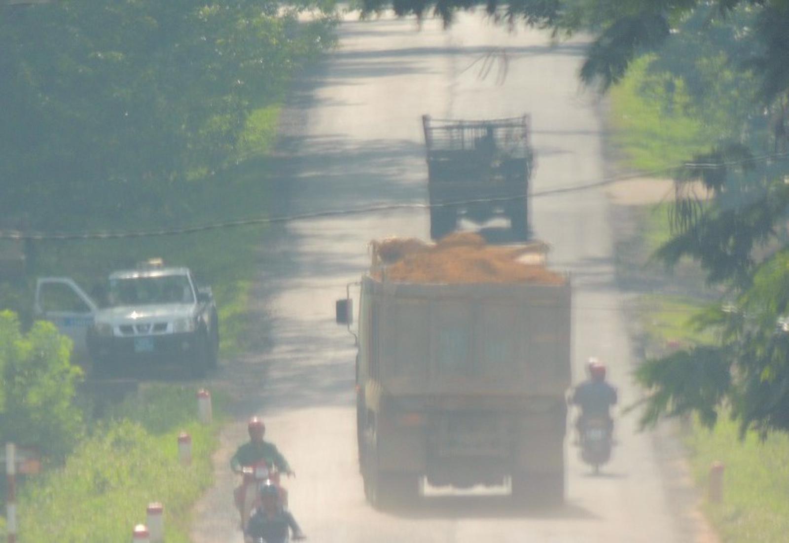 Xe chở đất vượt tải và không phủ bạt chạy liên tục trên đường tỉnh lộ 675