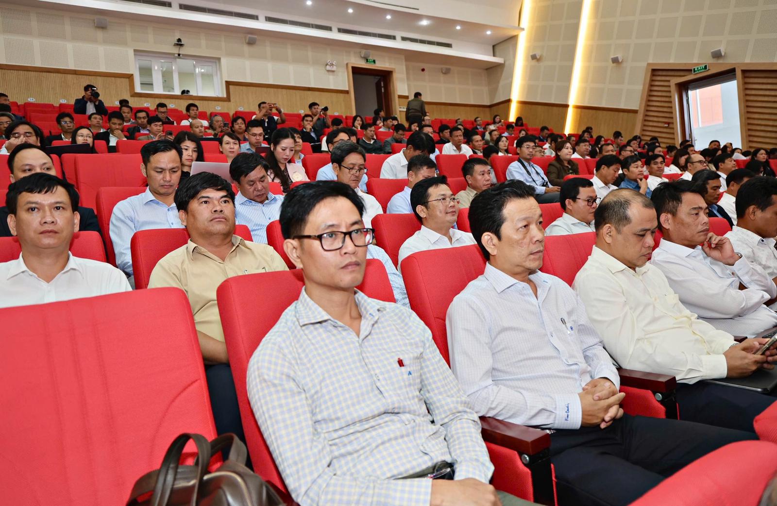Lãnh đạo UBND các xã, phường, đặc khu trên địa bàn tỉnh tham dự buổi họp báo. Ảnh: CTV