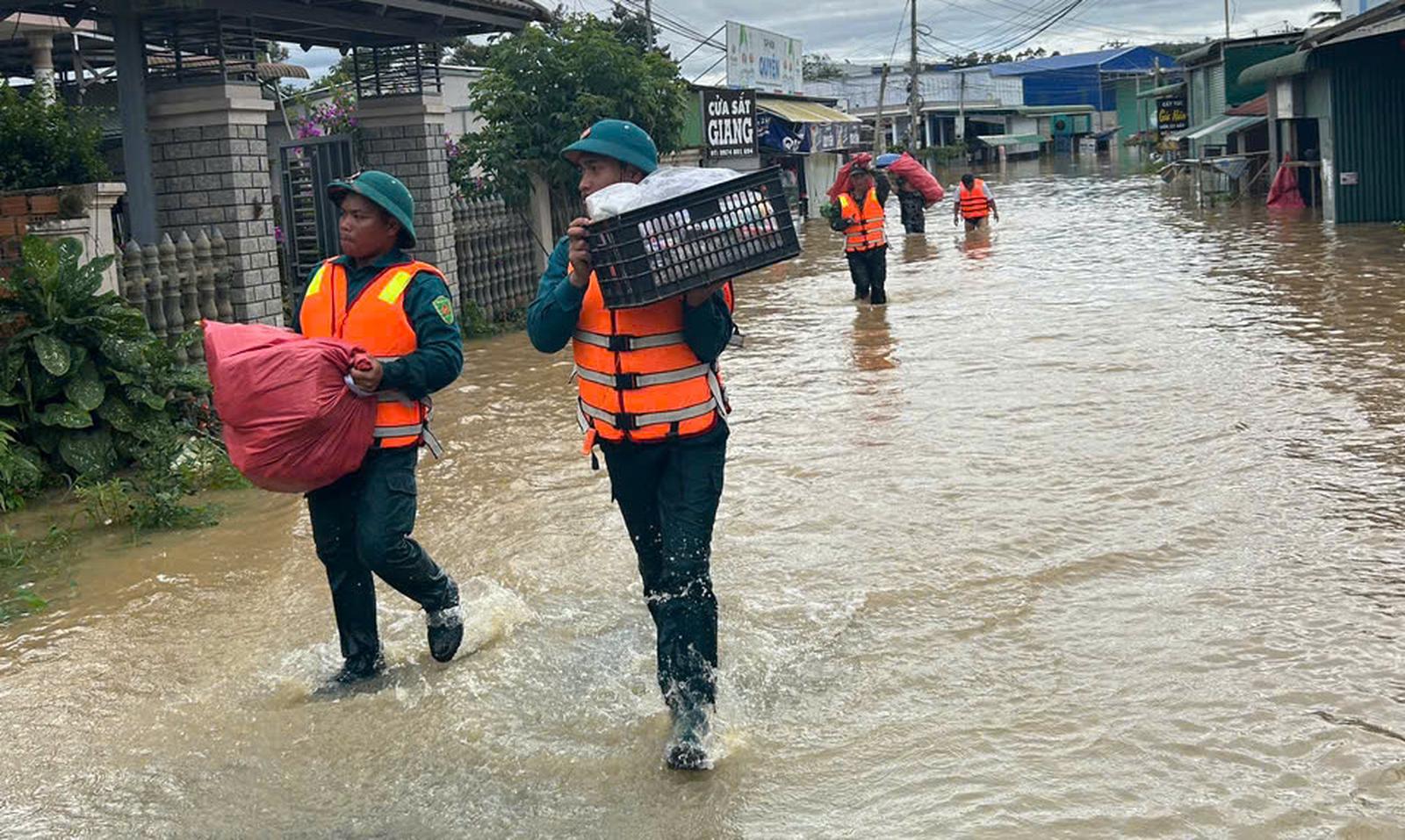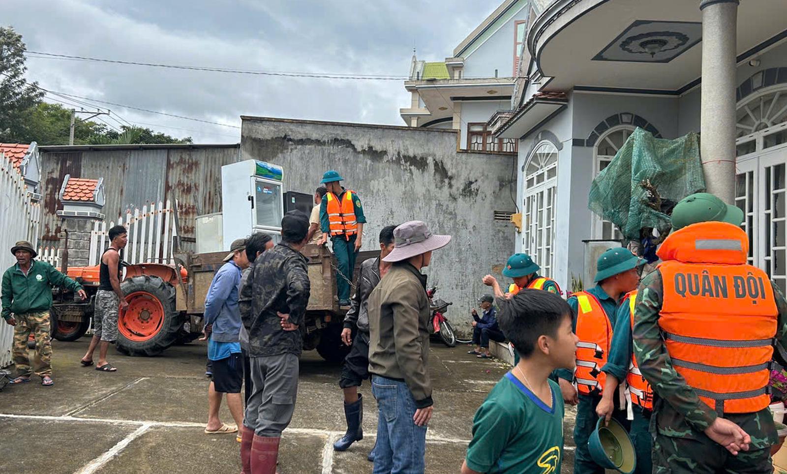 Những ngày qua, Bộ CHQS tỉnh Lâm Đồng đã có mặt tại các điểm nguy cấp. Đại tá Đinh Hồng Tiếng, Chỉ huy trưởng Bộ CHQS tỉnh cho biết, đơn vị đã huy động 100 cán bộ, chiến sĩ cùng xuồng, ca nô, xe quân dụng và áo phao cơ động đến xã D’Ran – nơi lượng mưa đo được đạt 386 mm, còn lưu lượng xả của thủy điện Đa Nhim có lúc lên đến 2.580 m³/s, khiến toàn bộ khu vực chìm trong biển nước.