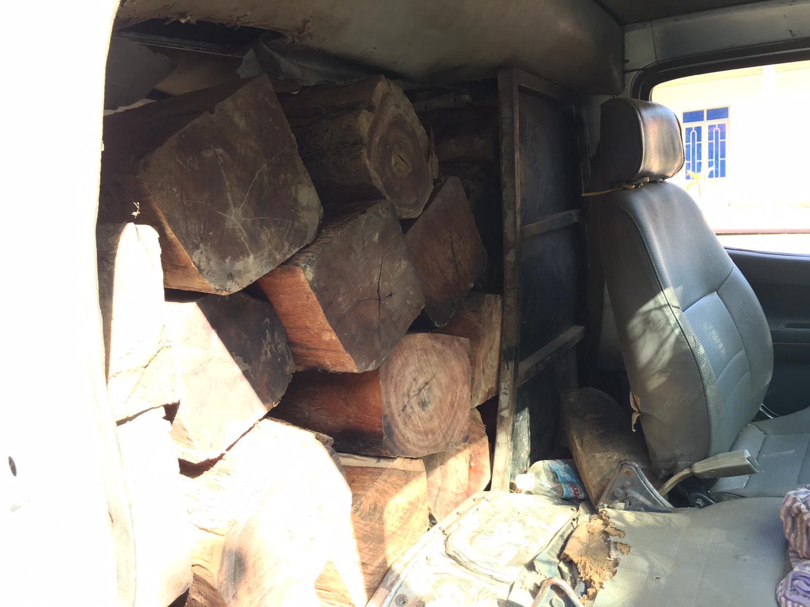 Số gỗ lậu được lực lượng kiểm lâm phát hiện trên xe. Ảnh: Quỳnh Anh