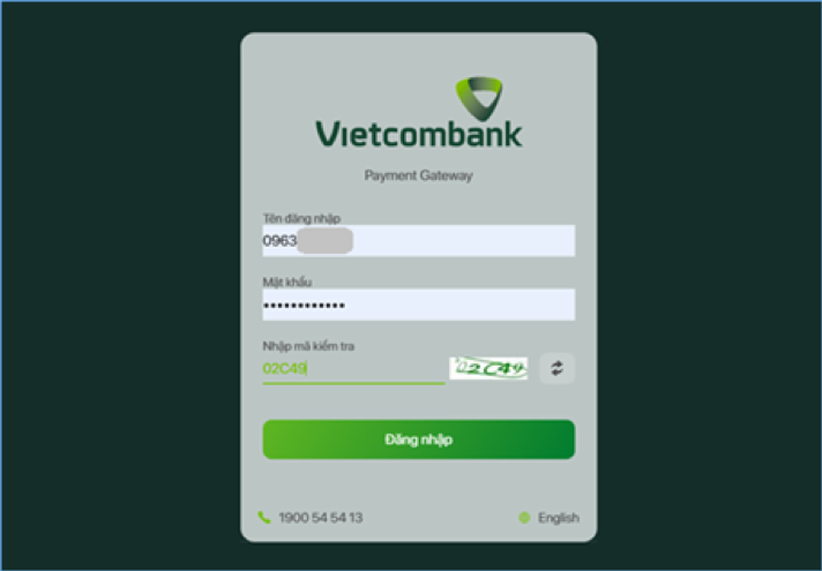 Ví dụ: Chọn Ngân hàng Vietcombank rồi click vào nút "Thanh toán". Hệ thống sẽ điều hướng qua trang Internet Banking của Ngân hàng Vietcombank.