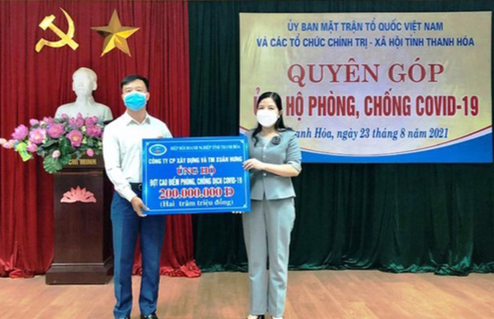 Công ty Cổ phần Xây dựng và Thương mại Xuân Hưng, Công ty Cổ phần Đầu tư và Xây dựng Bình Minh, Công ty TNHH Xây dựng và Thương mại Lam Sơn, Ngân hàng Nông nghiệp và Phát triển nông thôn - Chi nhánh tỉnh Thanh Hóa, mỗi đơn vị ủng hộ 200 triệu đồng; Công ty Cổ phần Cấp nước Thanh Hóa ủng hộ 150 triệu đồng.