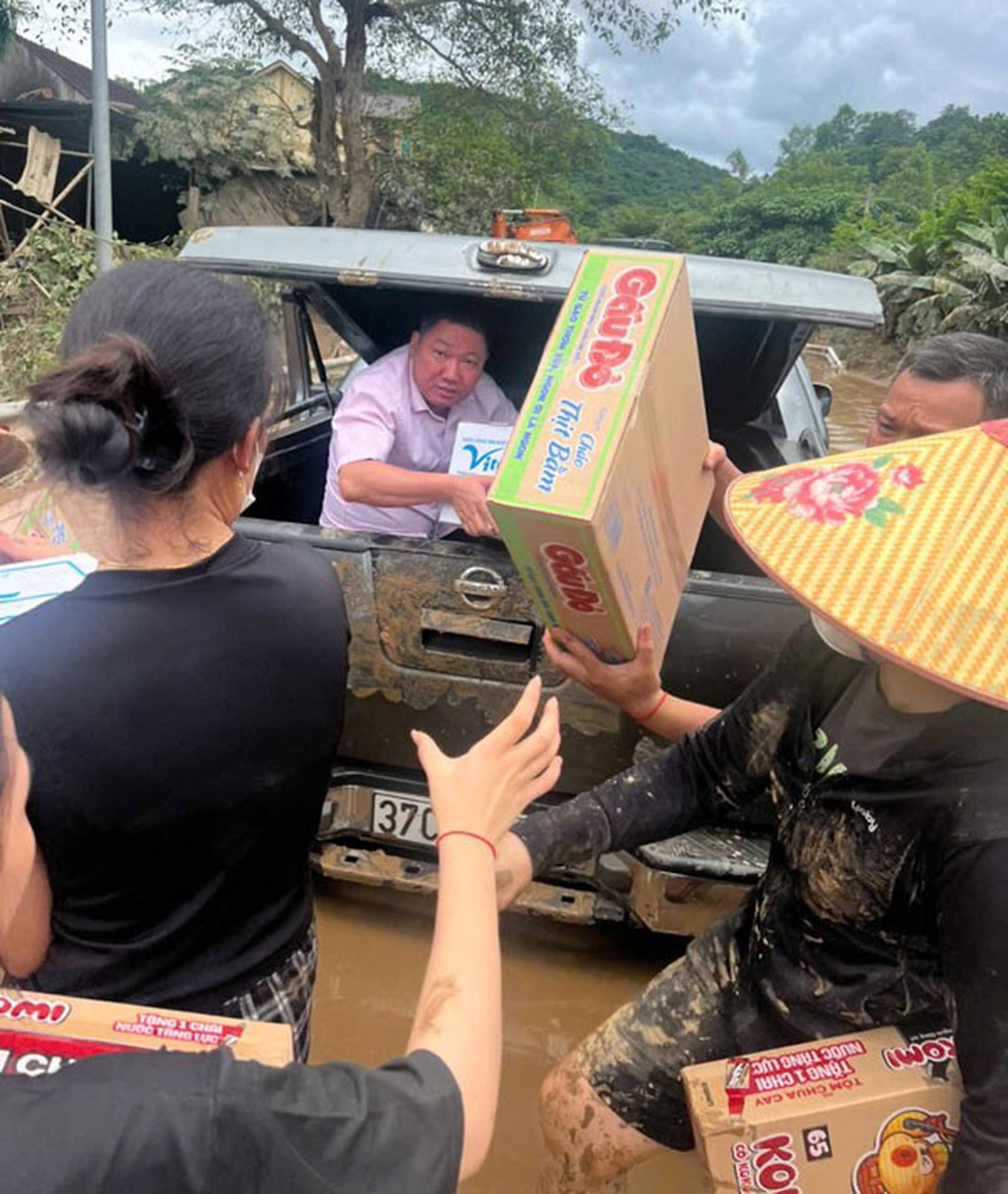 Những thùng mỳ tôm, nhu yếu phẩm được cán bộ NHCSXH trao tận tay cho bà con vùng lũ vượt qua khó khăn