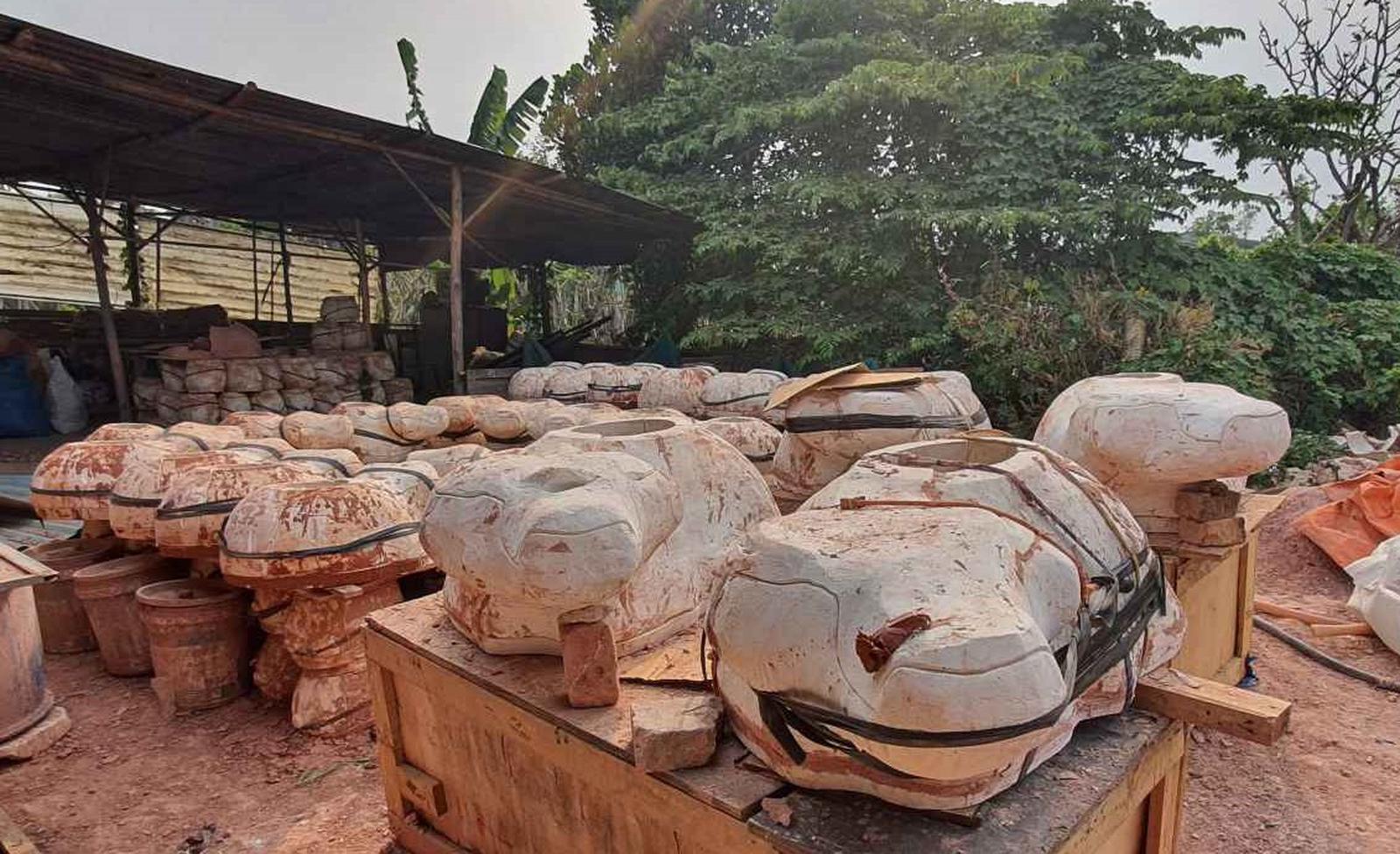 Trâu đất sau khi nung được các cơ sở gia công thu mua về để "trang điểm" thành "trâu vàng". (Ảnh: Chu Tuấn)