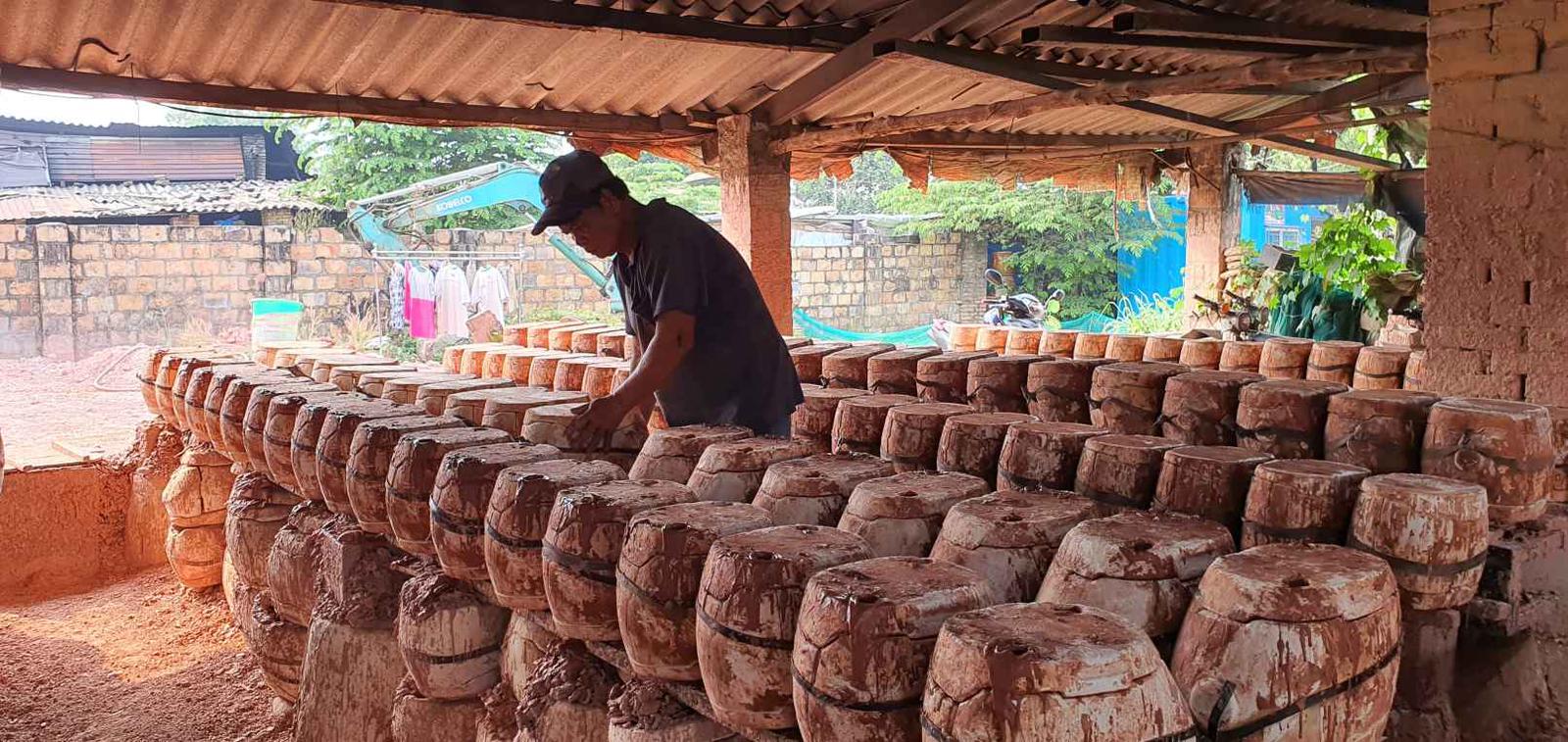 Để những chú heo, trâu đất đủ điều kiện mang vào lò lung, thợ gốm sẽ phải phơi khô để đảm bảo chất lượng tốt nhất. Thời gian nung sẽ kéo dài từ 10 tới 12 tiếng liên tục tùy thuộc vào từng loại sản phẩm. Sau khi nung xong thì đợi lò nguội mới tiến hành lấy sản phẩm ra…