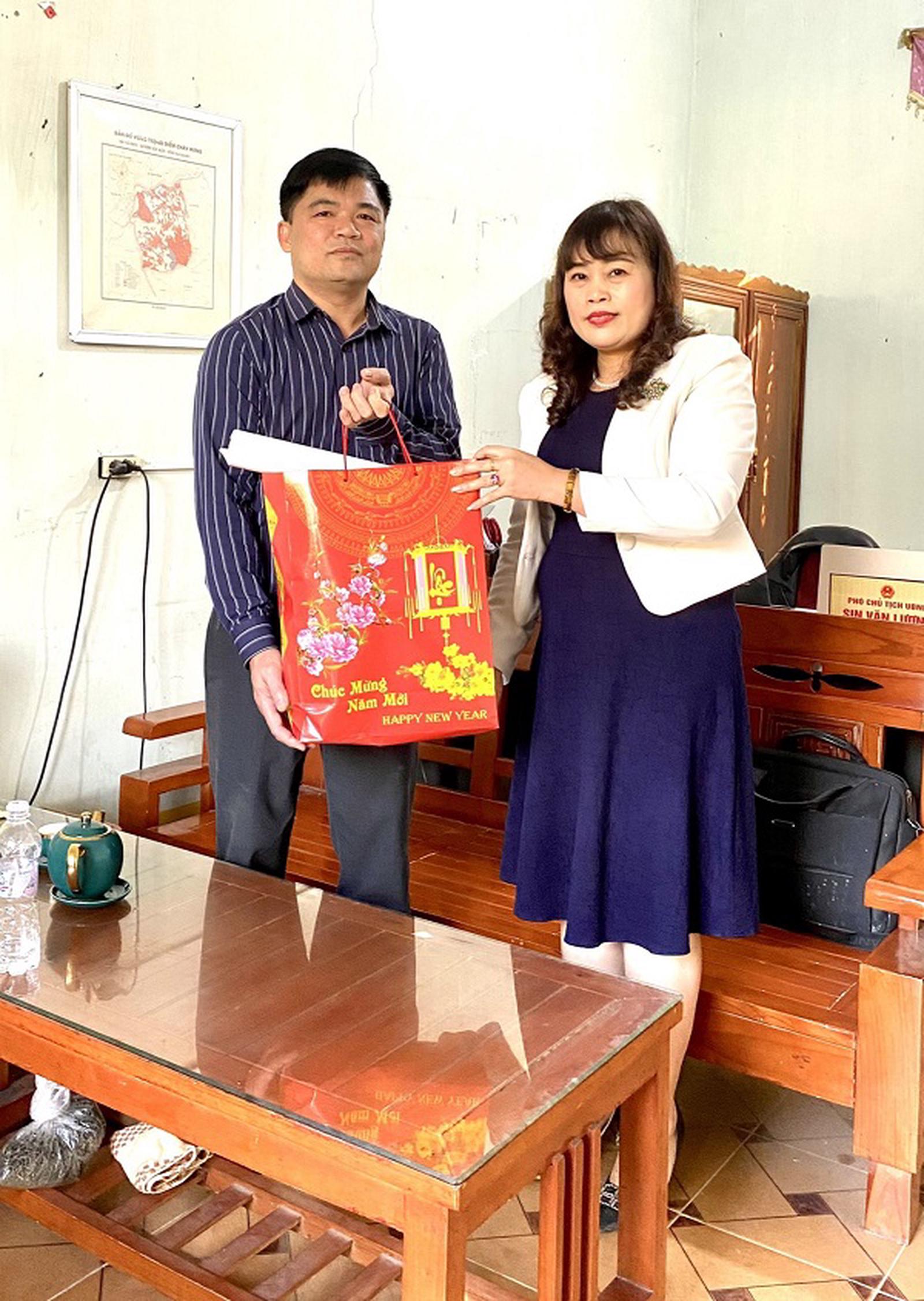 Đến chúc Tết Đảng ủy - UBND xã Tả Nhìu, bà Trần Thu Hà mong rằng năm 2024 lãnh đạo xã sẽ tiếp tục chỉ đạo, thực hiện thắng lợi các nhiệm vụ phát triển kinh tế, đảm bảo an ninh quốc phòng. Ảnh: BB