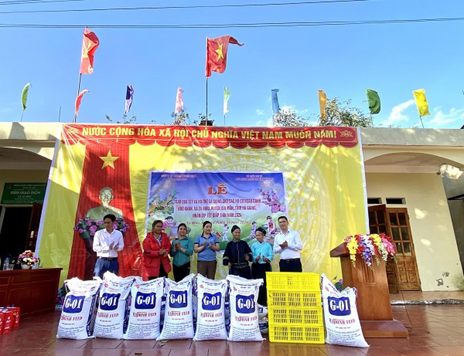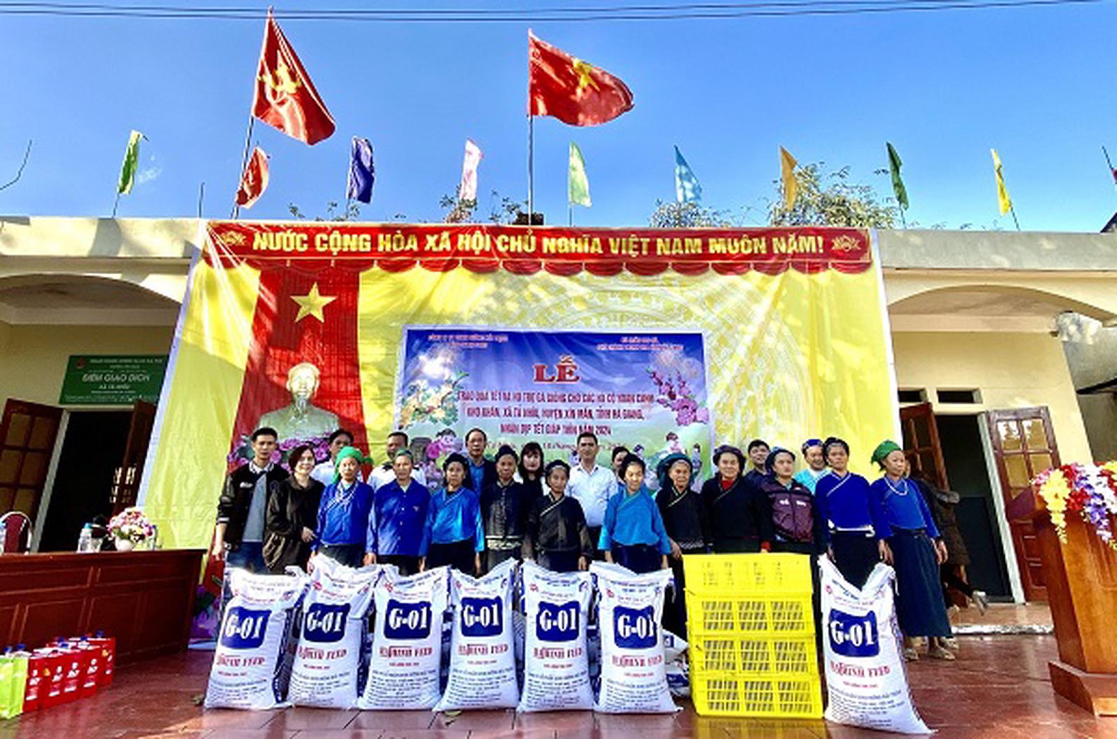 (Thanh tra) - Ngày 18/1, bà Trần Thu Hà, Phó Chánh Thanh tra tỉnh Hà Giang (thành viên Đoàn Công tác số 9 của Ban Thường vụ Tỉnh ủy Hà Giang) phối hợp với Công ty Cổ phần Dinh dưỡng Hải Thịnh FEED-FARM-FOOD tặng quà cho 40 hộ gia đình có hoàn cảnh khó khăn thuộc xã Tả Nhìu, huyện Xín Mần, tỉnh Hà Giang trị giá hơn 50 triệu đồng.
