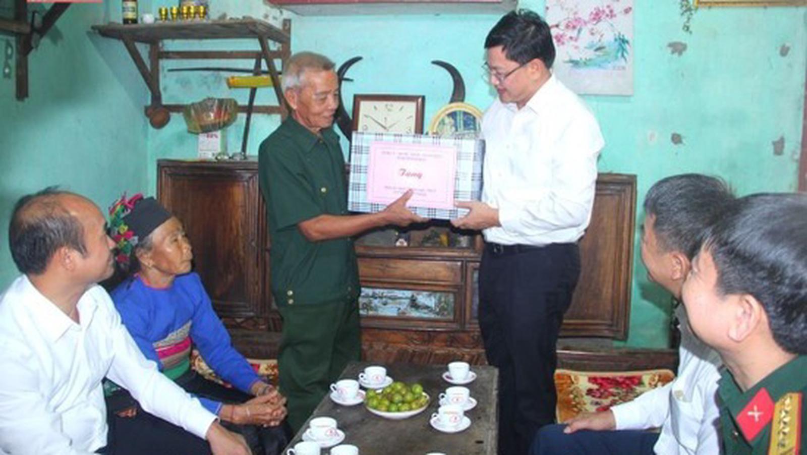 Ông Nguyễn Văn Hùng, Trưởng ban Tổ chức Tỉnh ủy Thanh Hóa thăm tặng quà cho các gia đình chính sách trên địa bàn huyện Như Xuân. Ảnh: VT