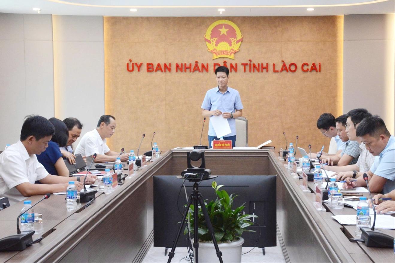 (Thanh tra) - Chiều 4/9, UBND tỉnh Lào Cai tổ chức buổi làm việc trực tiếp và trực tuyến với các sở, ngành, địa phương, đơn vị liên quan nhằm đánh giá tình hình triển khai các dự án sử dụng nguồn dự phòng ngân sách Trung ương năm 2024 để khắc phục hậu quả bão số 3 (bão Yagi) và mưa lũ sau bão. Ông Nguyễn Thế Phước, Phó Chủ tịch Thường trực UBND tỉnh chủ trì tại điểm cầu trụ sở UBND tỉnh.