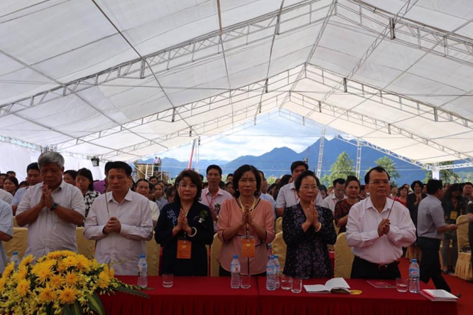 Theo đó về dự buổi lễ có nguyên Uỷ viên Bộ Chính trị, nguyên Chủ nhiệm Ủy ban Kiểm tra Trung ương Ngô Văn Dụ, nguyên Phó Chủ tịch nước Nguyễn Thị Doan, Thứ trưởng Bộ Văn Hóa Thể Thao và Di Lịch Đặng Bích Liên, lãnh đạo Ban chỉ đạo Tây Bắc, Ban Tôn giáo Chính phủ; đại diện các bộ, ngành của trung ương và các tỉnh Lào Cai, Lai Châu và các phật tử gần xa. Ảnh: Thành Lâm.