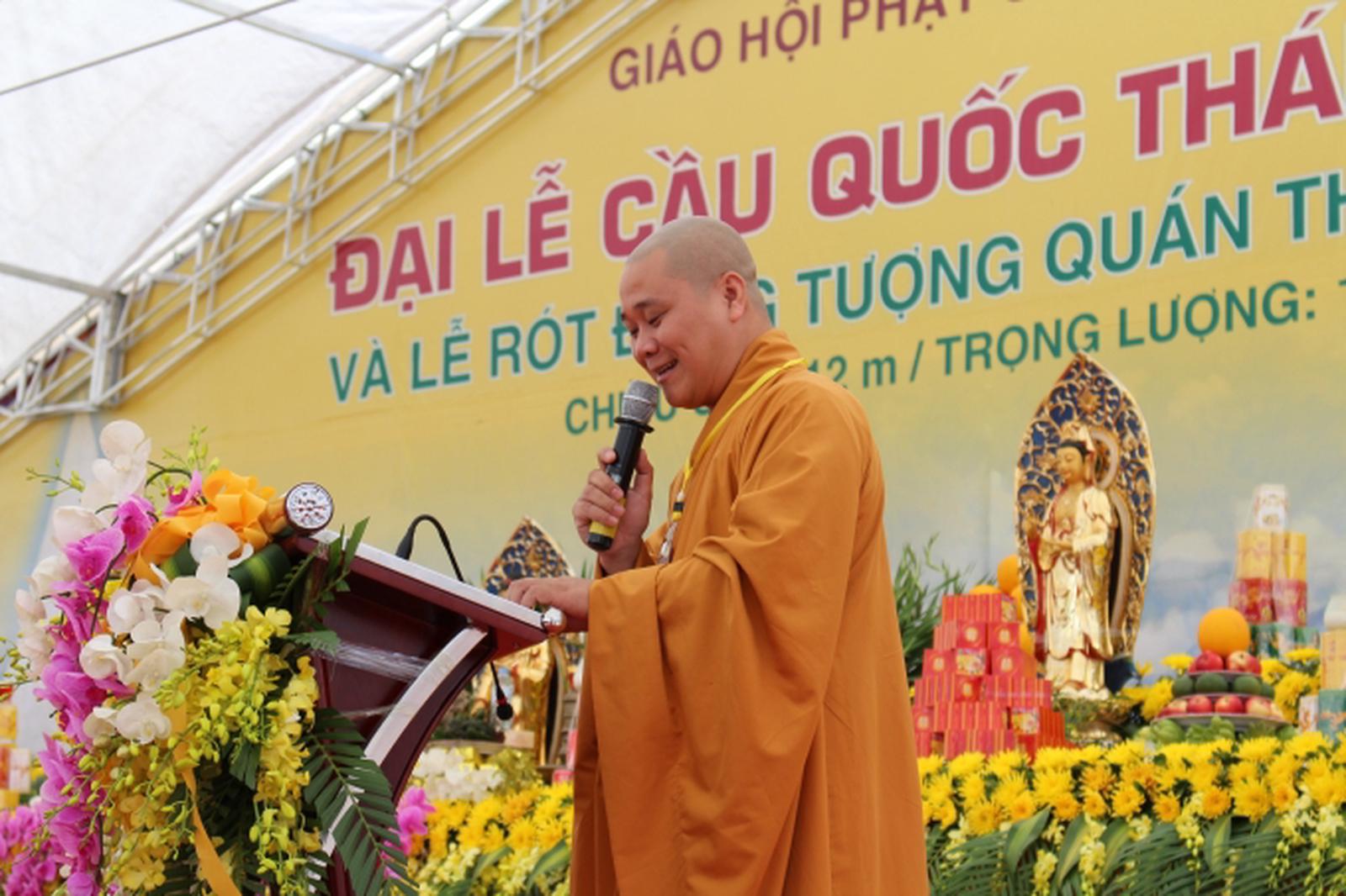 Các lãnh đạo và các chư tôn đức giáo phẩm Giáo hội Phật giáo Việt Nam di chuyển ra khuôn đúc pho tượng. Ảnh: Thành Lâm.