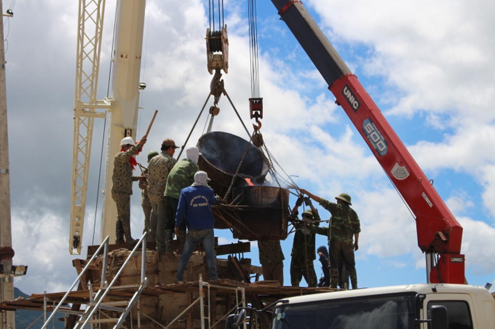 Để tôn thêm cõi tâm linh màu nhiệm Fansipan, Giáo hội Phật giáo Việt Nam đã cùng Công ty TTHH Minh Đức, Tập đoàn Sun Group và phật tử tổ chức đúc tượng Bồ Tát Quán Thế Âm bằng nguyên liệu đồng nguyên chất tại vùng mỏ Lào Cai với chiều cao 12m và trọng lượng 18 tấn đúng vào tiết kỷ niệm ngày vía Bồ Tát Quán Thế Âm thành đạo với sự công đức của các doanh nghiệp và khách hảo tâm thập phương. Ảnh: Nguyễn Thắng