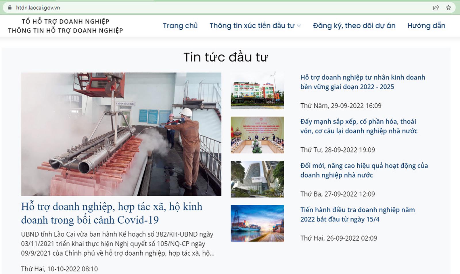 Giao diện và địa chỉ truy cập của cổng thông tin hỗ trợ doanh nghiệp tỉnh Lào Cai