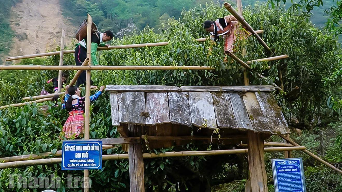 Người dân áp dụng kỹ thuật hái mới để bảo tồn những cây chè shan tuyết cổ thụ. Ảnh: Dương Tú Phong