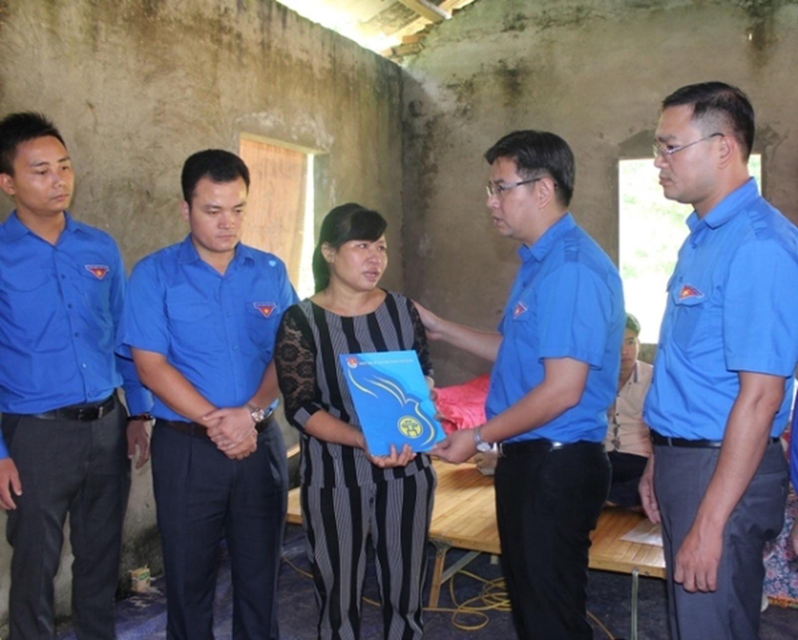 Thành đoàn Hà Nội tặng hiện vật cho các hộ gia đình bị thiệt hại do thiên tai tại Lào Cai. Ảnh: QT