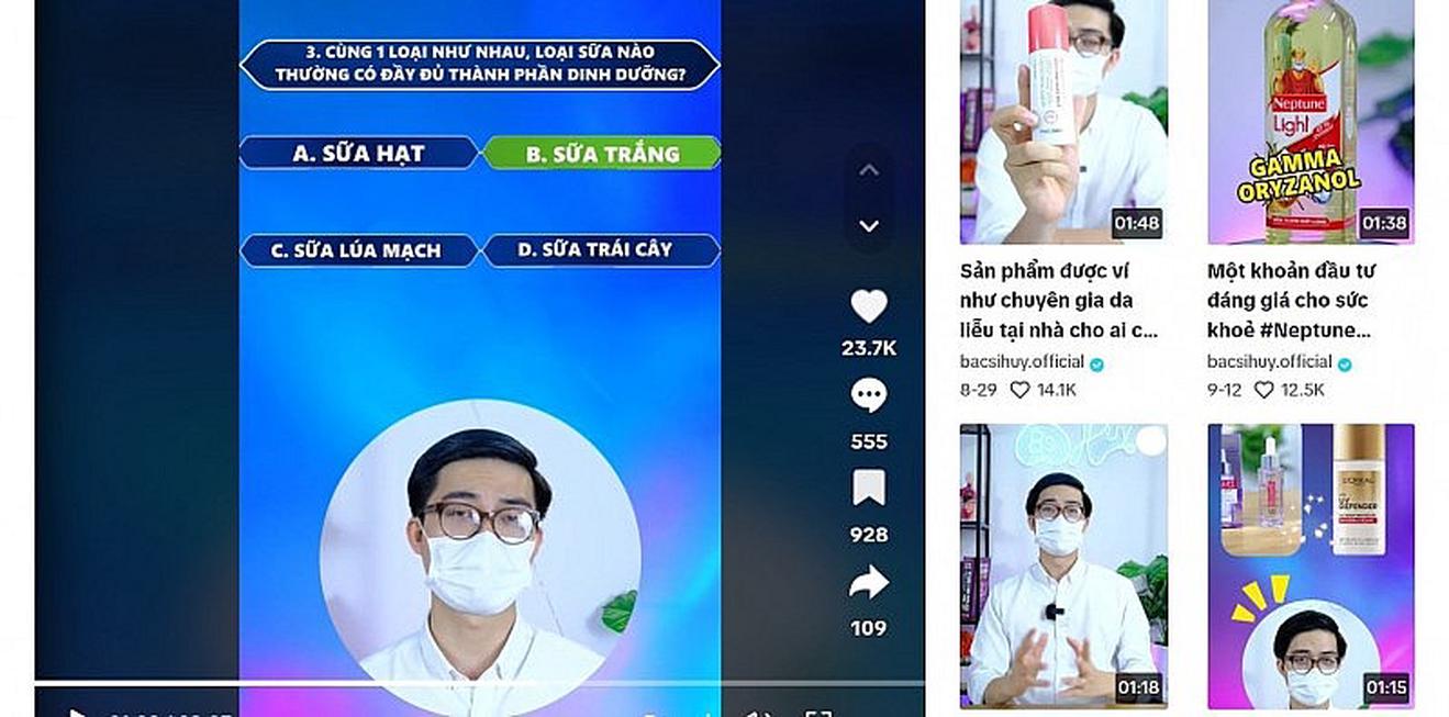 Trên kênh TikTok “Bác sĩ Huy” của người tự giới thiệu là bác sĩ Lê Tiến Huy, Phó Viện Trưởng - Viện Khoa Học Công Nghệ Y Dược đăng tải clip phỏng theo gameshow “Ai là triệu phú”. Trong một câu hỏi, “bác sĩ” Huy hỏi: “Cùng 1 loại như nhau, loại sữa nào thường có đầy đủ thành phần dinh dưỡng”. Các đáp áp được đưa ra là: A. Sữa hạt, B. Sữa trắng, C. Sữa lúa mạch và D. Sữa trái cây.
