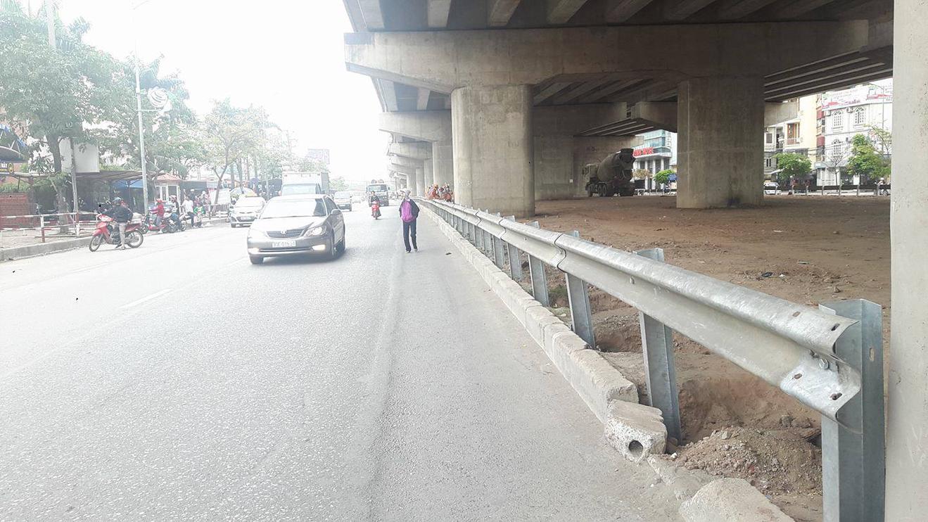 Và mới đây Sở Giao thông Vận tải Hà Nội đã cho tiến hành xây lắp hàng rào bằng sắt để bịt lại toàn bộ phía dưới cầu vượt cạn ngay tại khu vực Bến xe Nước Ngầm để hạn chế tối đa người đi bộ và các phương tiện băng qua dải phân cách này.