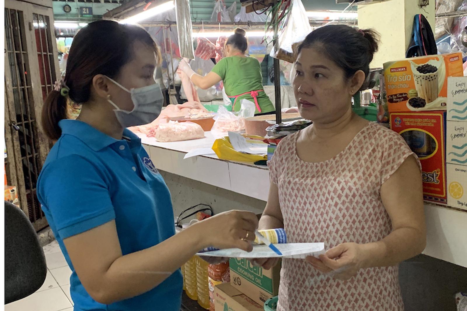 Tuyên truyền viên BHXH Việt Nam vận động người dân tham gia BHXH tự nguyện