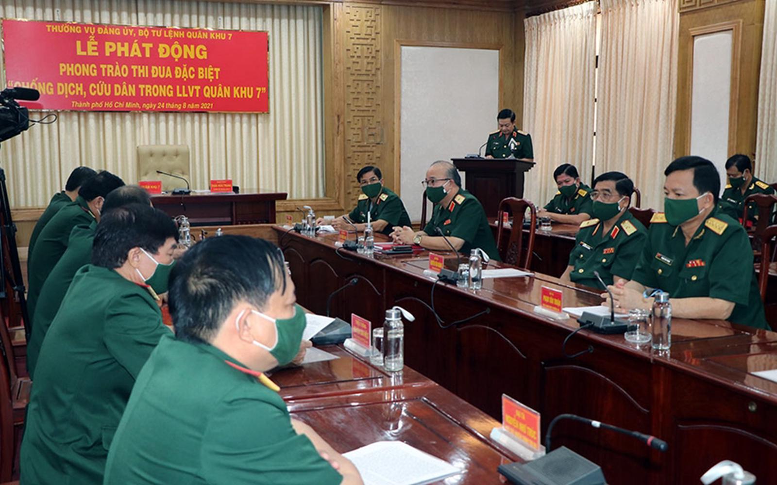 Ngày 24/8, Thường vụ Đảng ủy, Bộ Tư lệnh Quân khu 7 tổ chức lễ phát động phong trào thi đua đặc biệt với chủ đề “Chống dịch, cứu dân trong LLVT Quân khu 7”. Trung tướng Trần Hoài Trung, Bí thư Đảng ủy, Chính ủy Quân khu chủ trì buổi lễ.