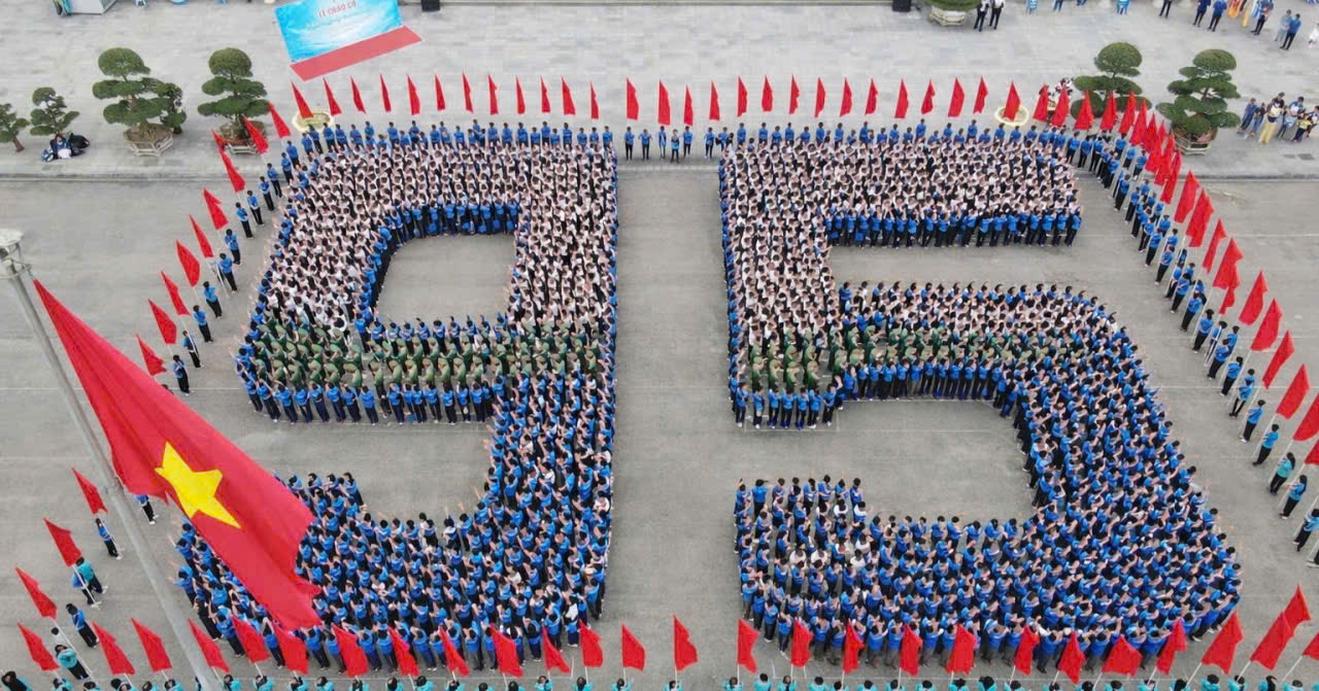 Gần 3.000 đoàn viên, thanh thiếu nhi Nghệ An đã tham gia Lễ chào cờ và xếp chữ quy mô lớn, tạo điểm nhấn ý nghĩa hướng tới kỷ niệm 95 năm Ngày thành lập Đoàn TNCS Hồ Chí Minh. Ảnh: Sắc Việt
