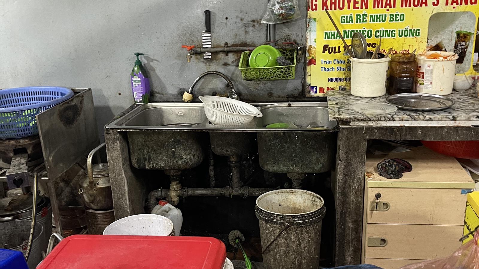 Một số hàng quán vỉa hè khác có bồn rửa chén bát, tuy nhiên không chú trọng vệ sinh thường xuyên nên các cặn bẩn bám đen, ố mốc xung quanh các đồ dùng chế biến tạo môi trường sinh sôi vi khuẩn ảnh hưởng đến chất lượng thực phẩm.