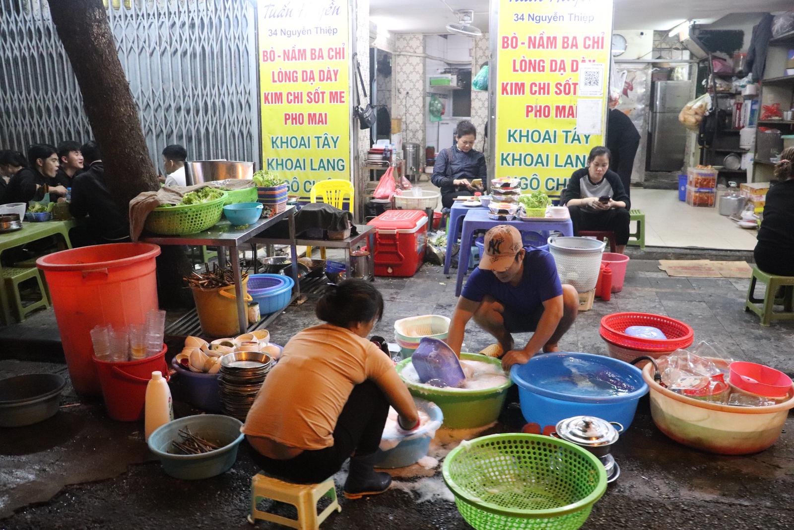 Lý giải cho hành động trên, anh P.K.H (39 tuổi) chủ quán ăn vỉa hè tại quận Hoàn Kiếm cho biết, nguồn vốn kinh doanh hạn chế, không gian phía trong rất chật hẹp không đủ diện tích để chế biến và nấu món ăn. Bởi vậy quán tận dụng thêm không gian vỉa hè để vừa chuẩn bị nguyên liệu và làm nơi dọn rửa.