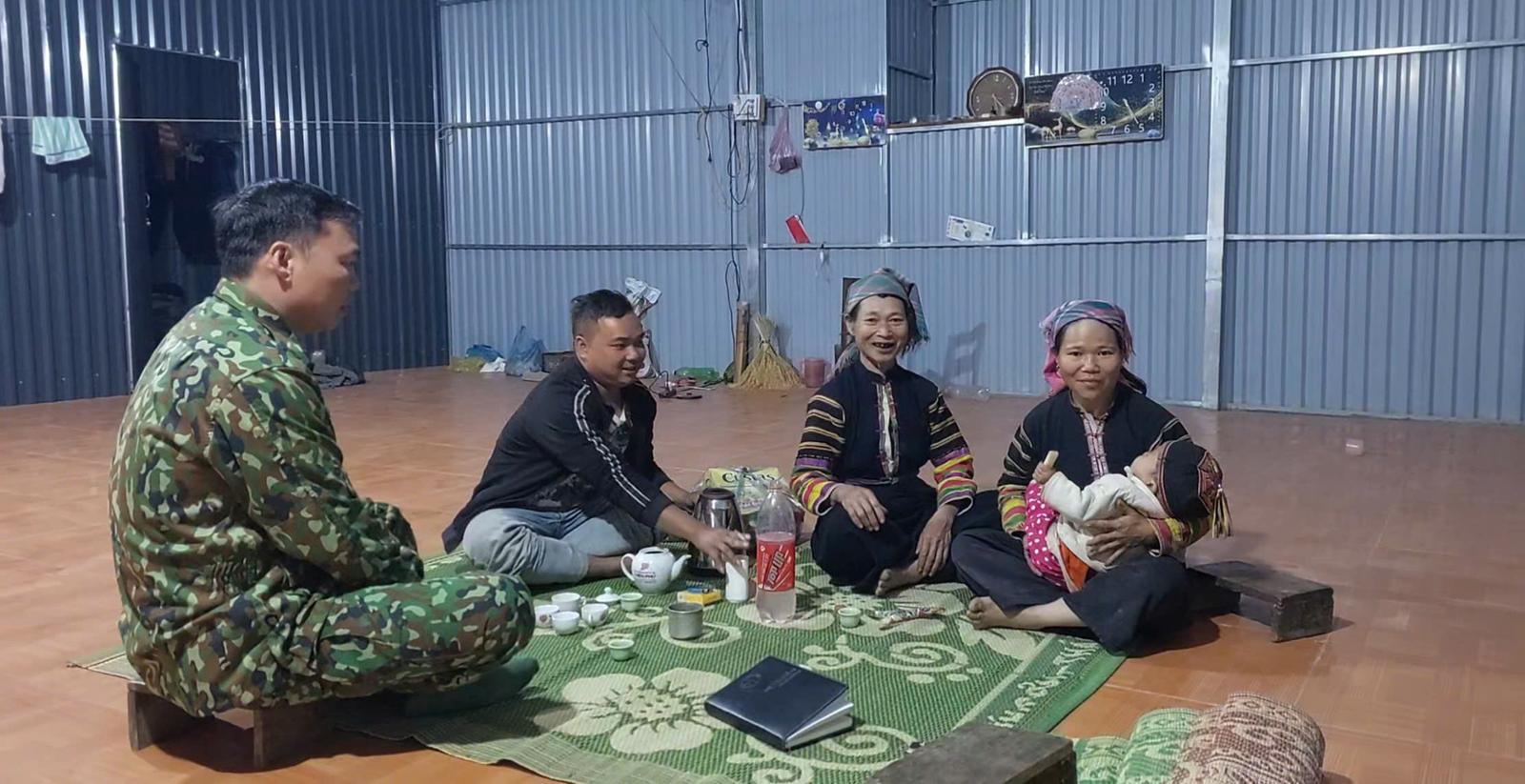 Trung Tá Khâm chia sẻ trên đường di chuyển: Em Trọng là người dân tộc Lô Lô, gia đình thuộc hộ nghèo, bố mất sớm do tai nạn, mẹ lấy chồng mới ở rể theo phong tục và sinh thêm em bé, gia đình ở xa trường nên không có điều kiện để em tiếp tục đi học, cán bộ chiến sỹ đã đến vận động xin cho em làm con nuôi của Đồn để tiếp tục được đi học. Nay em thi xong giữa học kỳ một, nên đưa về thăm nhà và trao đổi với gia đình tình hình ăn ở, học tập của em tại Đồn và thăm nắm tình hình của gia đình. Đây là hoạt động thường xuyên của Đồn với gia đình để giữ mối liên lạc thường xuyên, làm sao tạo điều kiện tốt nhất cho con yên tâm rèn luyện.