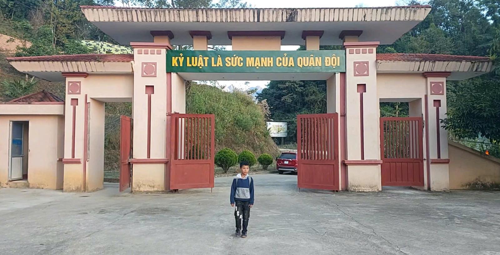 Tại cổng, gặp Trung tá Trần Văn Khâm - Chính trị viên phó Đồn Biên phòng Cô Ba đang đứng đón em Lang Đình Trọng (sinh năm 2013, xóm Ngàm Lồm, xã Cô Ba), con nuôi của Đồn để cùng về thăm gia đình em.