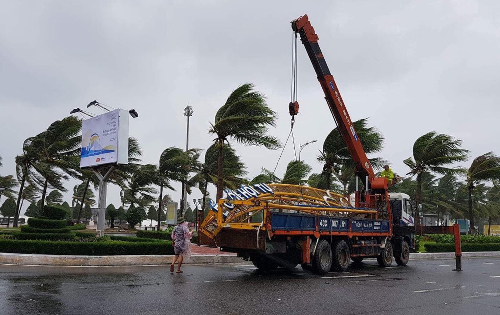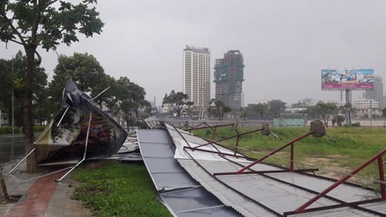 TP Đà Nẵng đang chuẩn bị đón Tuần lễ Cấp cao APEC 2017, nhưng do mưa lớn và gió giật liên tục đã làm ngã nhiều pa nô, cổng chào, bản hiệu, cờ phướng... trên các tuyến đường Phạm Văn Đồng, Võ Văn Kiệt, Võ Nguyên Giáp...
