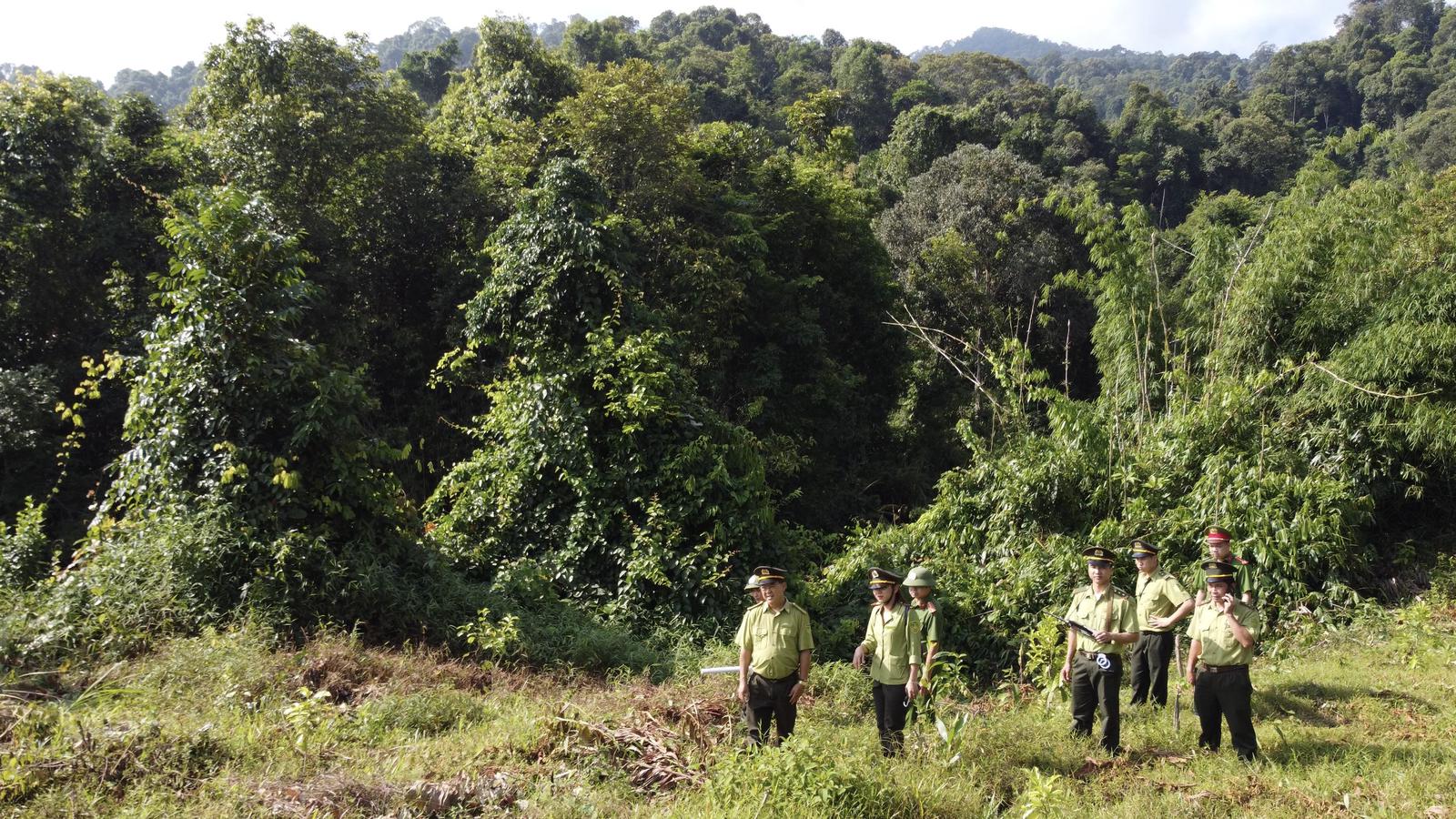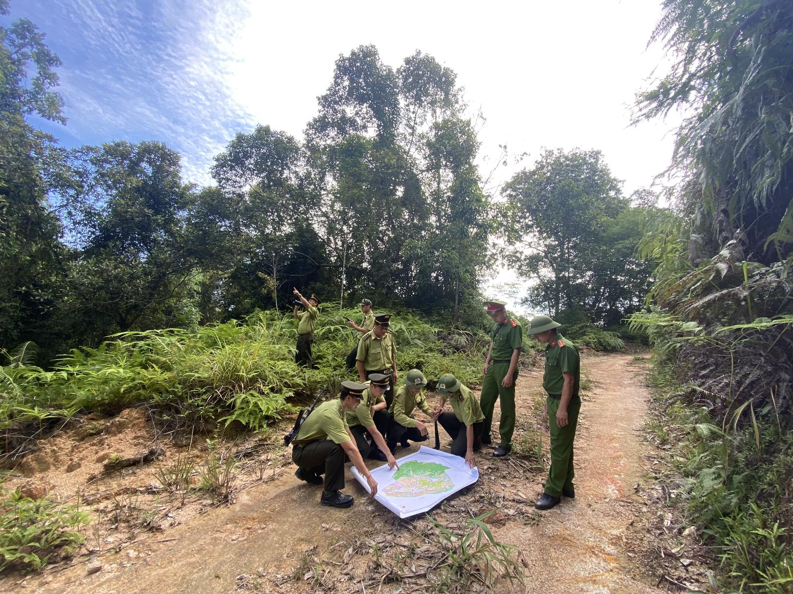 Kiểm lâm huyện Lang Chánh và lực lượng chức năng kiểm tra công tác an ninh rừng trên địa bàn. Ảnh: VT