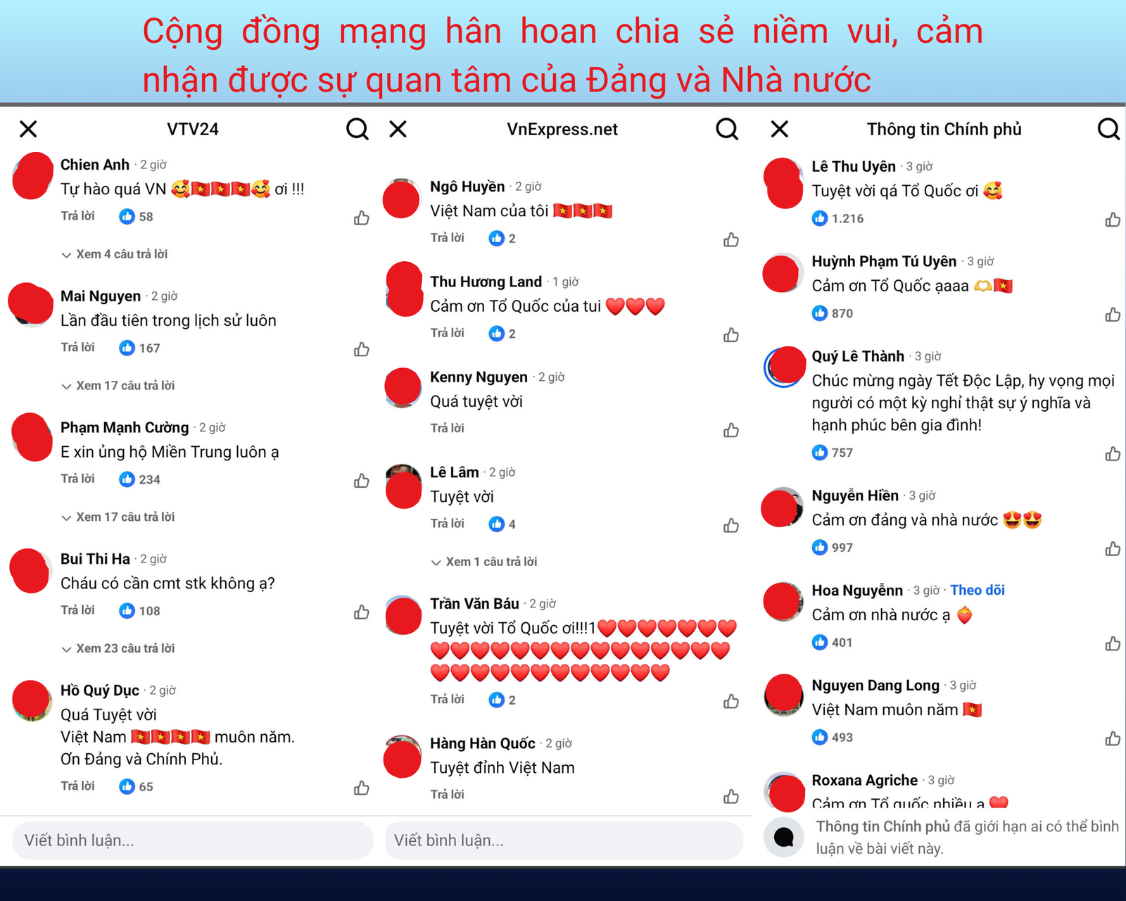 Những bình luận tự hào của cư dân mạng với chính sách nhân văn của Đảng và Nhà nước. Ảnh: chụp từ mạng xã hội
