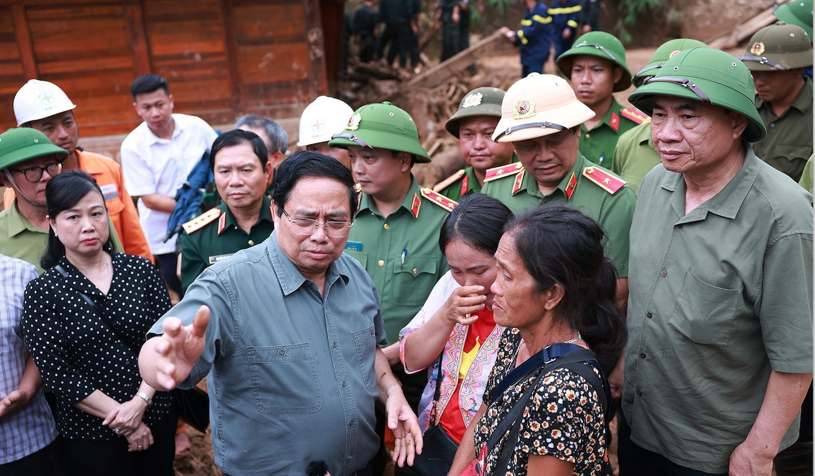 Thủ tướng Phạm Minh Chính động viên bà con bị thiệt hại do mưa lũ. Ảnh: thethaovanhoa.vn