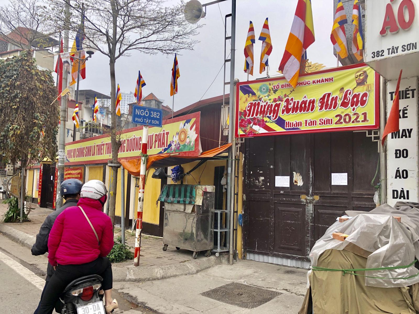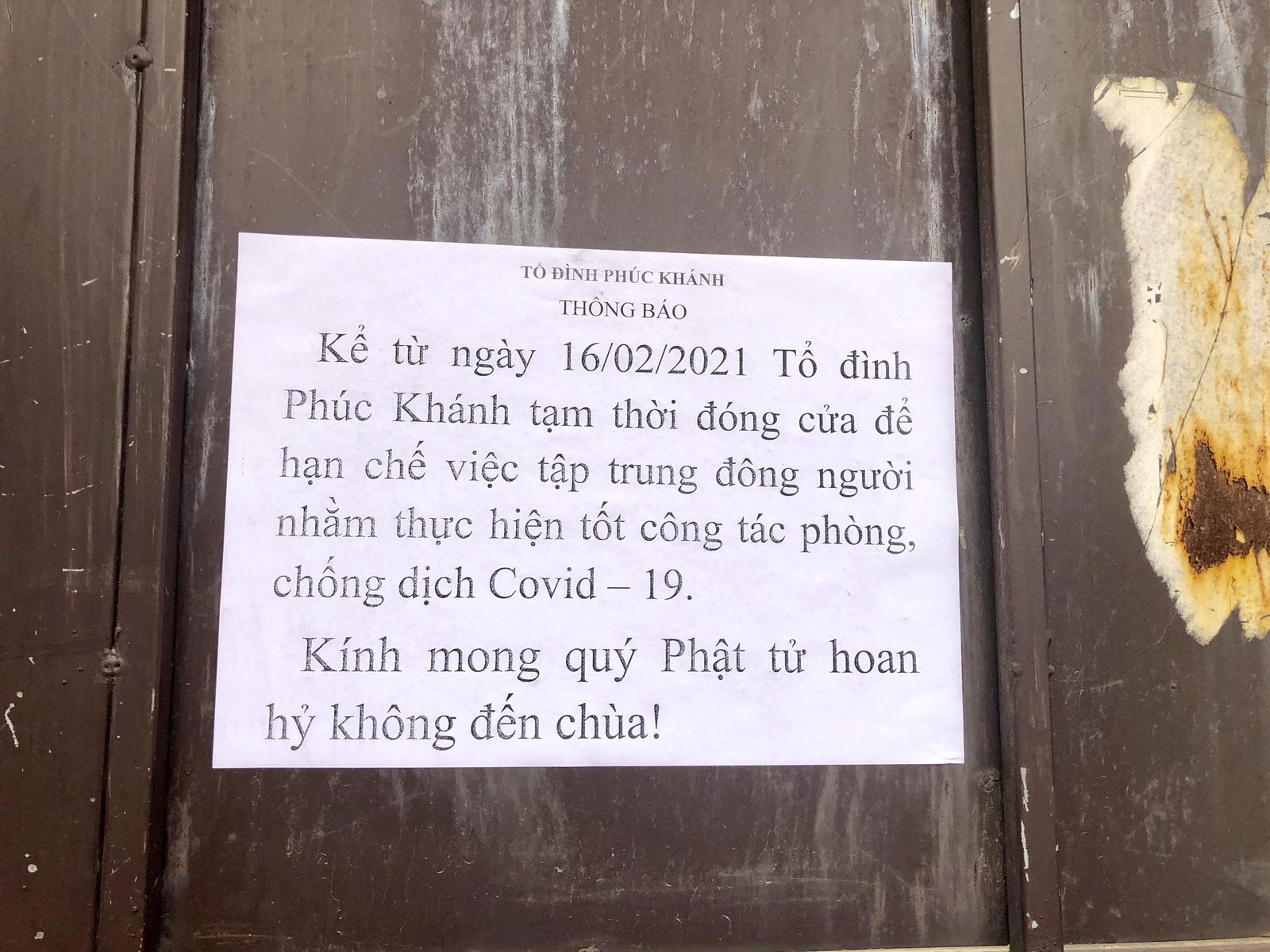 Chùa Phúc Khánh, Đống Đa, tạm đóng cửa và dán thông báo gửi tới các Phật tử gần xa