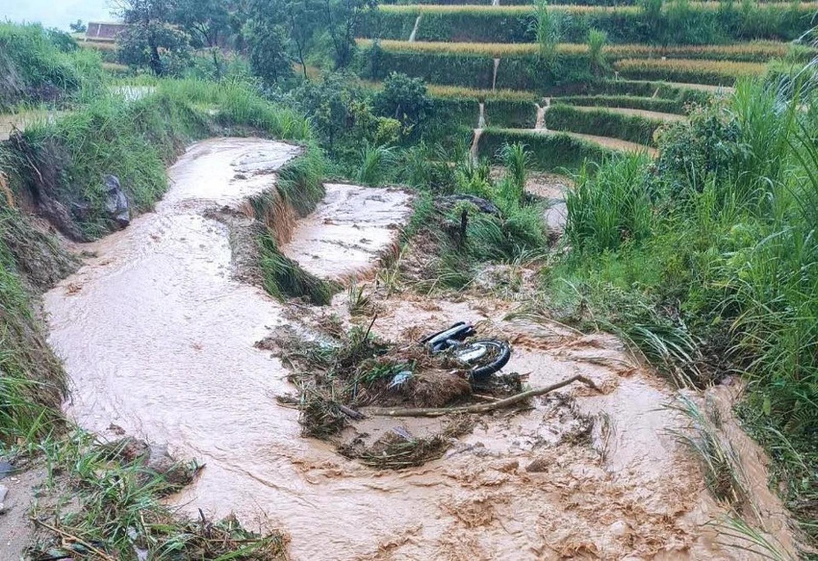 Theo thông tin từ người dân, tại xã Trung Thịnh, huyện Xín Mần, mưa lớn tạo thành dòng lũ đã cuốn trôi ba xe máy của người dân để ven đường để đi làm đồng. Rất may, không có thiệt hại về người.