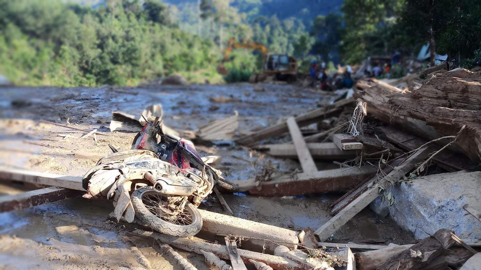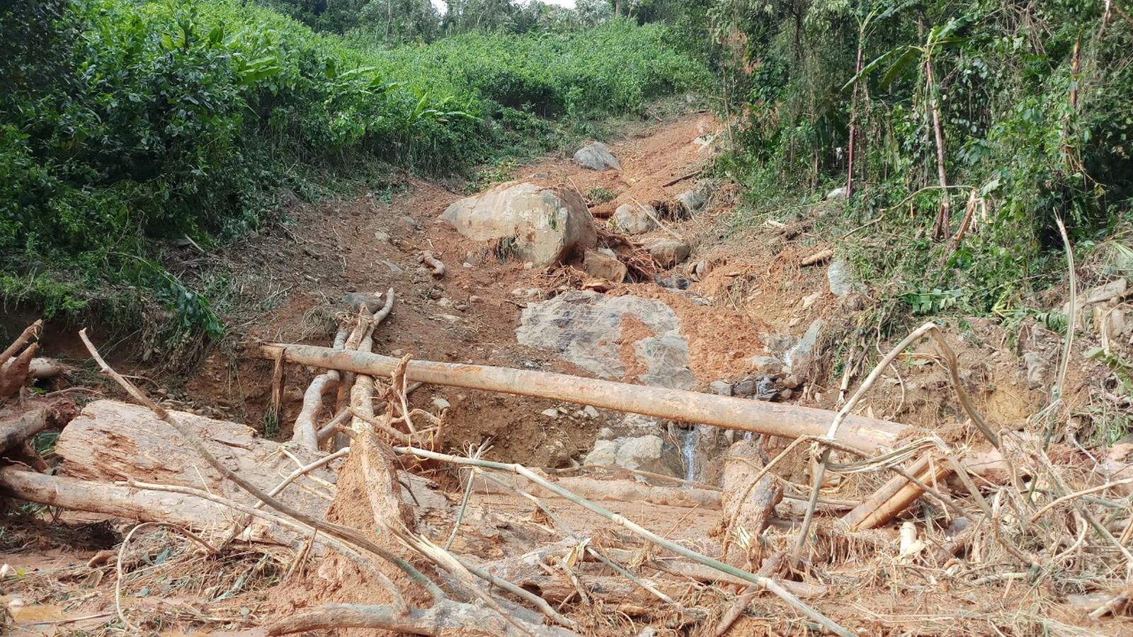 2 ngày qua, lực lượng cứu nạn vẫn chưa thể tiếp cận hiện trường sạt lở tại thôn 1 và thôn 6, xã Phước Lộc, vì tuyến đường ĐH2 vào xã bị sạt lở, đất đá vùi lấp cao.