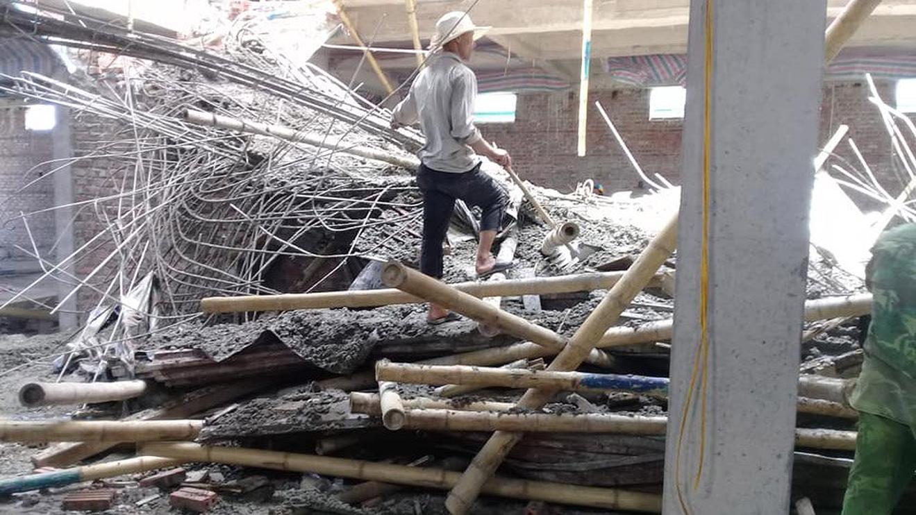 Giàn giáo 1 công trình siêu thị ở Hải Hậu, Nam Định đang xây dựng bị đổ sập vùi lấp 2 người đàn ông, một người đã tử vong.