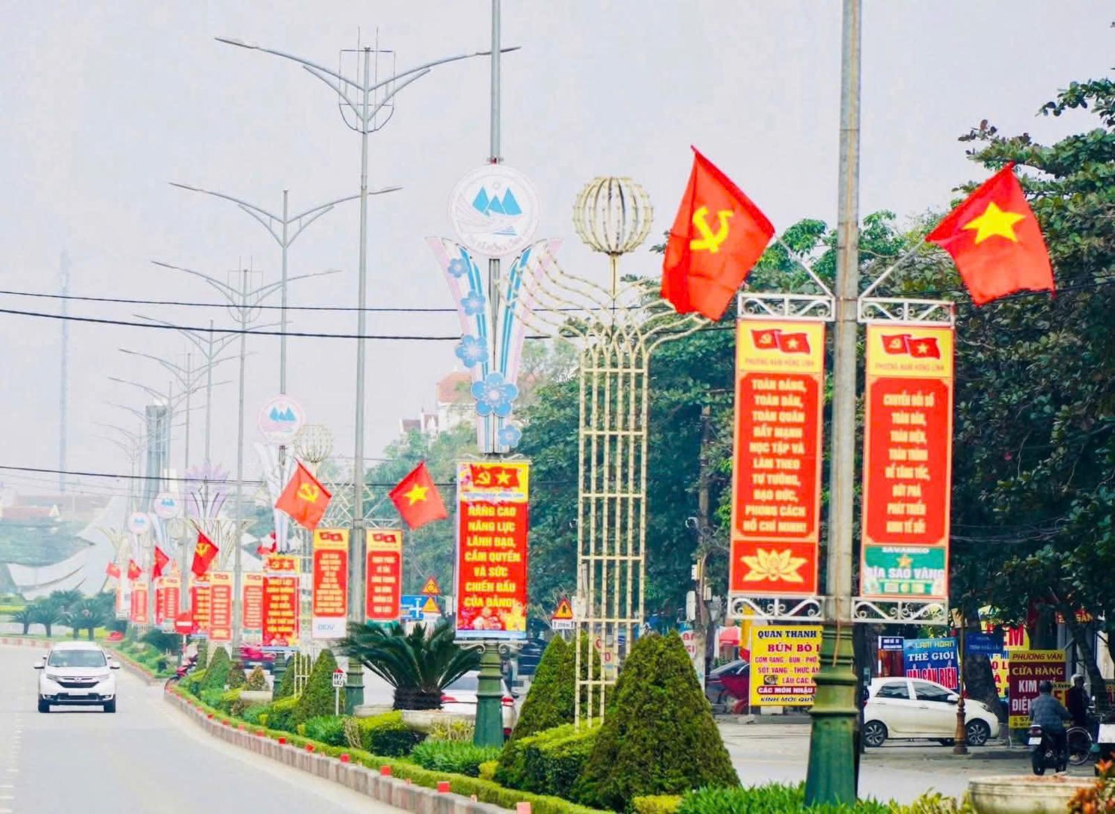 Đường phố rợp cờ hoa khẳng định vùng đất đang chuyển mình mạnh mẽ trong kỷ nguyên số. Ảnh: NT
