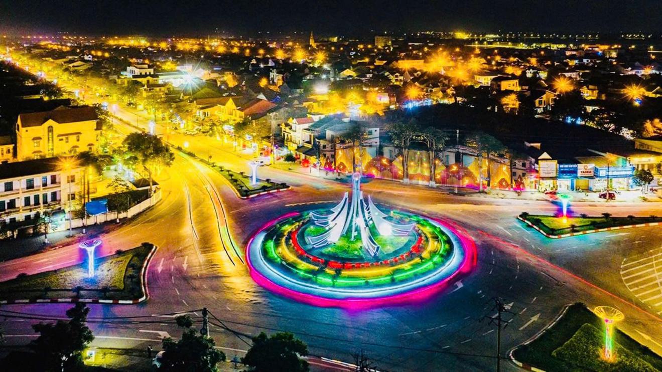 Phường Nam Hồng Lĩnh rực rỡ về đêm. Ảnh: Ngọc Trâm