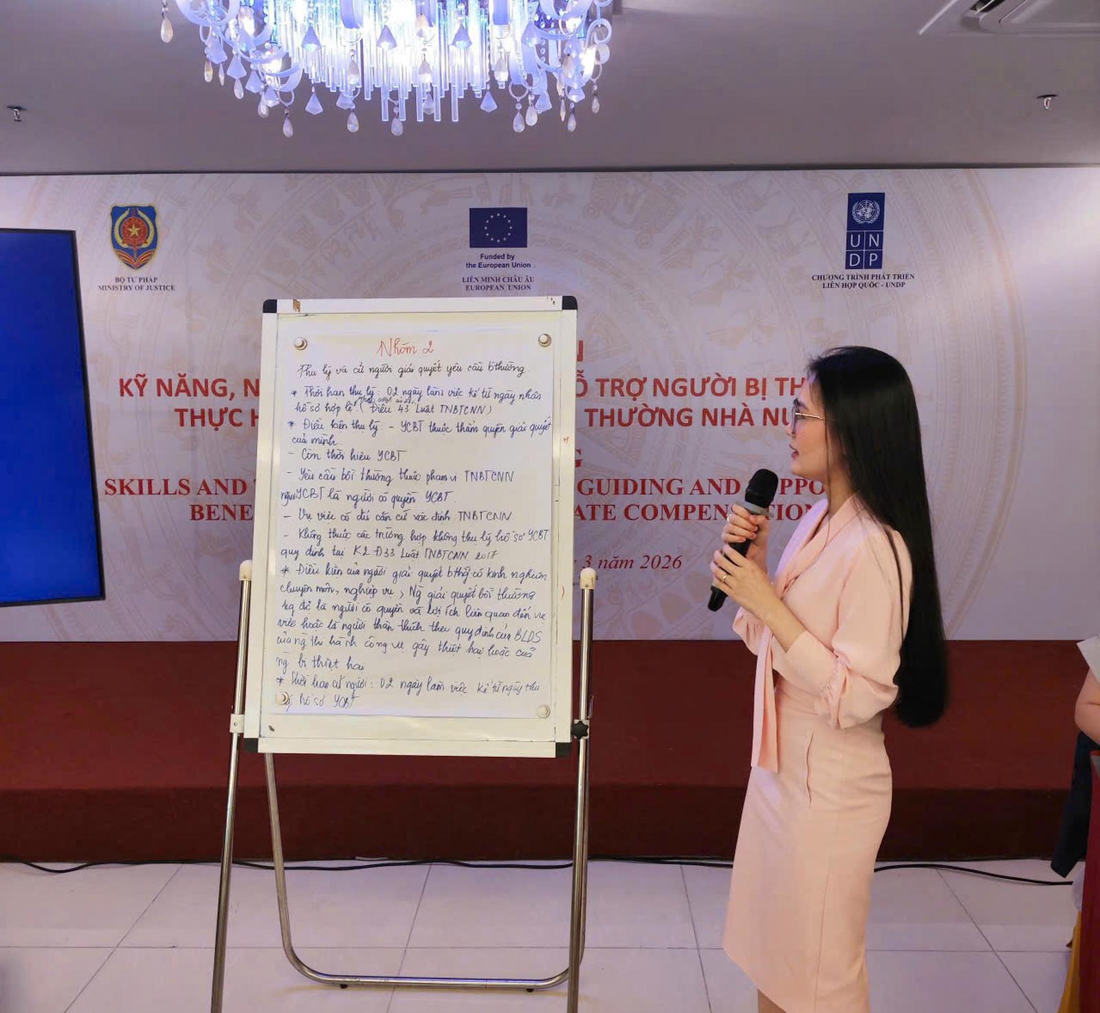 Ông cảm ơn sự tham gia nhiệt tình, đầy đủ, trách nhiệm của các học viên và sự hỗ trợ kỹ thuật của dự án EU JULE. Đồng thời, mong rằng trong thời gian tới, dự án tiếp tục hỗ trợ Cục Đăng ký giao dịch bảo đảm và Bồi thường Nhà nước để tổ chức những hoạt động tương tự nhằm nâng cao kỹ năng, nghiệp vụ cho đội ngũ công chức tham mưu thực hiện công tác bồi thường tại các địa phương.
