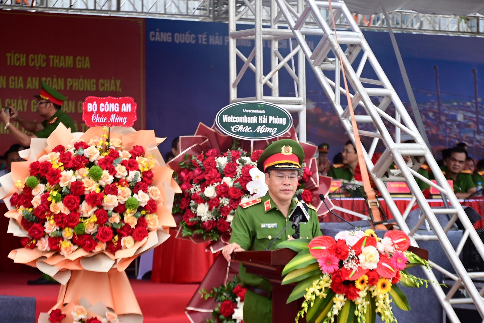 Phát biểu chào mừng tại hội thi, Phó Chủ tịch UBND TP Hải Phòng Hoàng Minh Cường nhiệt liệt chào mừng các đại biểu Bộ Công an, các tỉnh, thành phố, 19 đội tuyển tham gia vòng chung kết Hội thi Nghiệp vụ chữa cháy và CNCH “tổ liên gia an toàn PCCC” toàn quốc năm 2024 tại TP Hải Phòng. Đồng thời, chúc 19 đội tuyển bình tĩnh, tự tin, vận dụng hết những hiểu biết, kiến thức của mình để hoàn thành các phần thi một cách xuất sắc trên tinh thần giao lưu, học hỏi kinh nghiệm và lan truyền kiến thức, kỹ năng về PCCC và CNCH cho mọi người để đảm bảo an toàn hơn nữa trong cuộc sống.