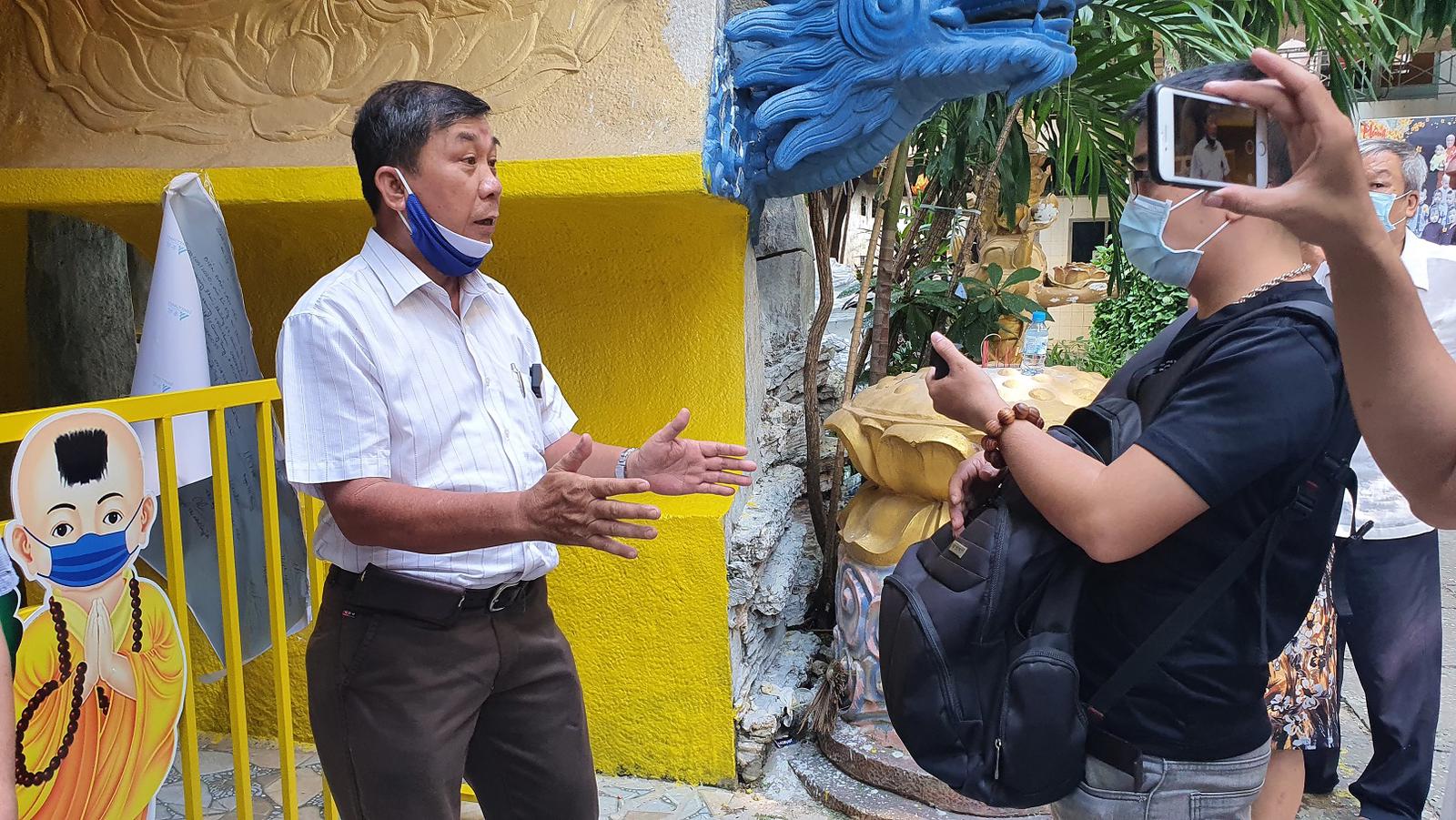 Thân nhân gửi tro cốt tại chùa Kỳ Quang 2 chia sẻ thông tin với báo chí. (Ảnh: CT)
