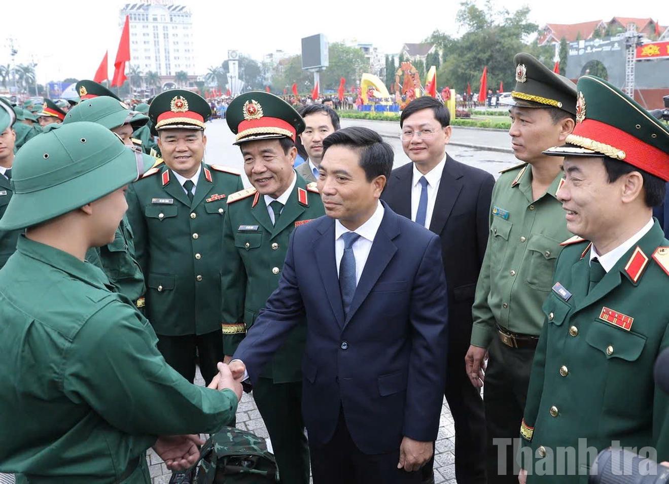 Tại buổi lễ, các đồng chí lãnh đạo Trung ương, tỉnh Thanh Hóa và địa phương đã tặng quà, động viên các tân binh yên tâm lên đường thực hiện nghĩa vụ với Tổ quốc. Trong tiếng trống hội và sự cổ vũ của người thân, những chuyến xe chở tân binh rời Quảng trường Lam Sơn, mang theo niềm tin và kỳ vọng của quê hương vào thế hệ trẻ tiếp bước truyền thống anh hùng của xứ Thanh.
