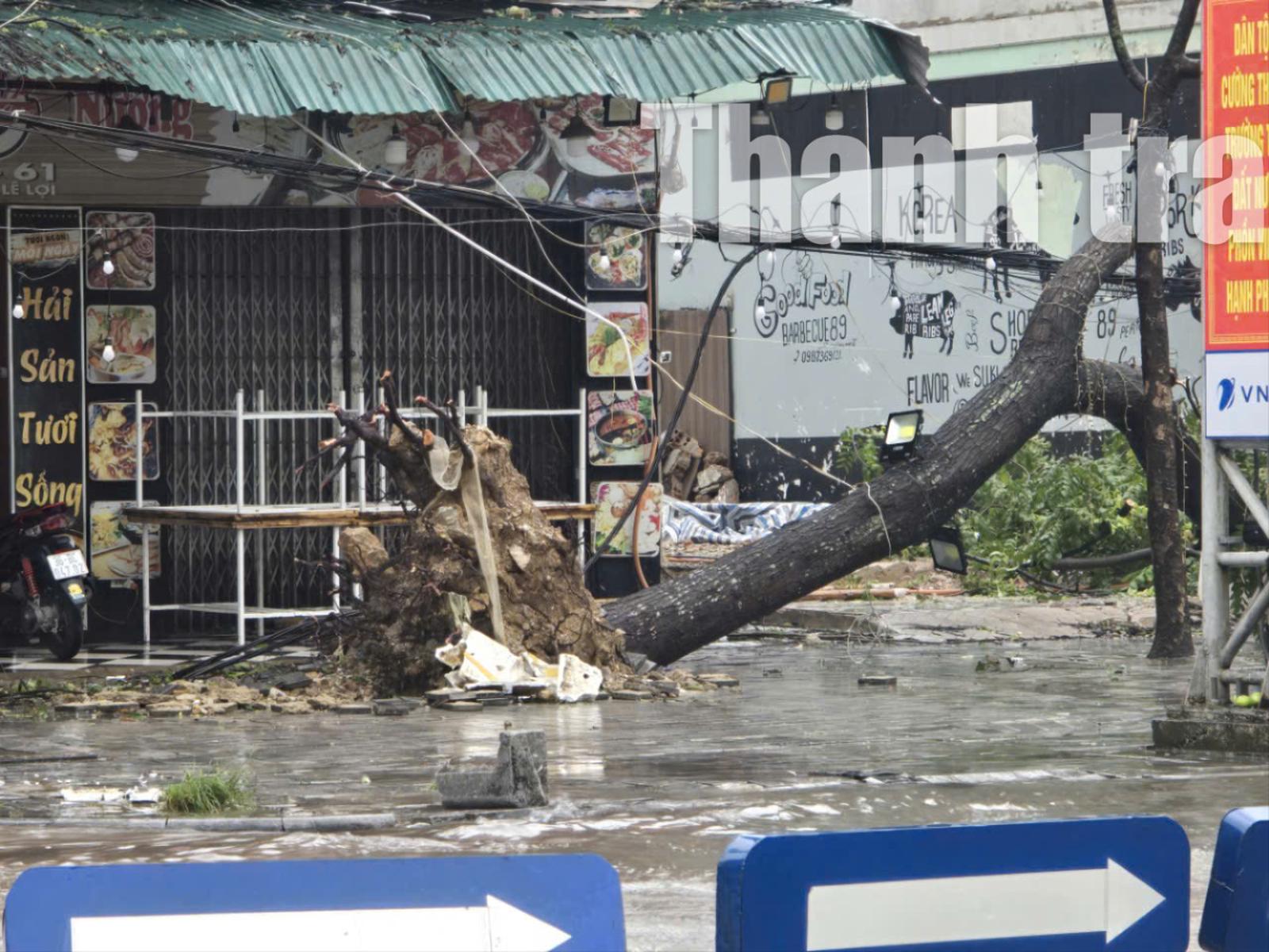 Nhiều cây cối bị đỗ gãy sau bão số 5. Ảnh: Văn Thanh