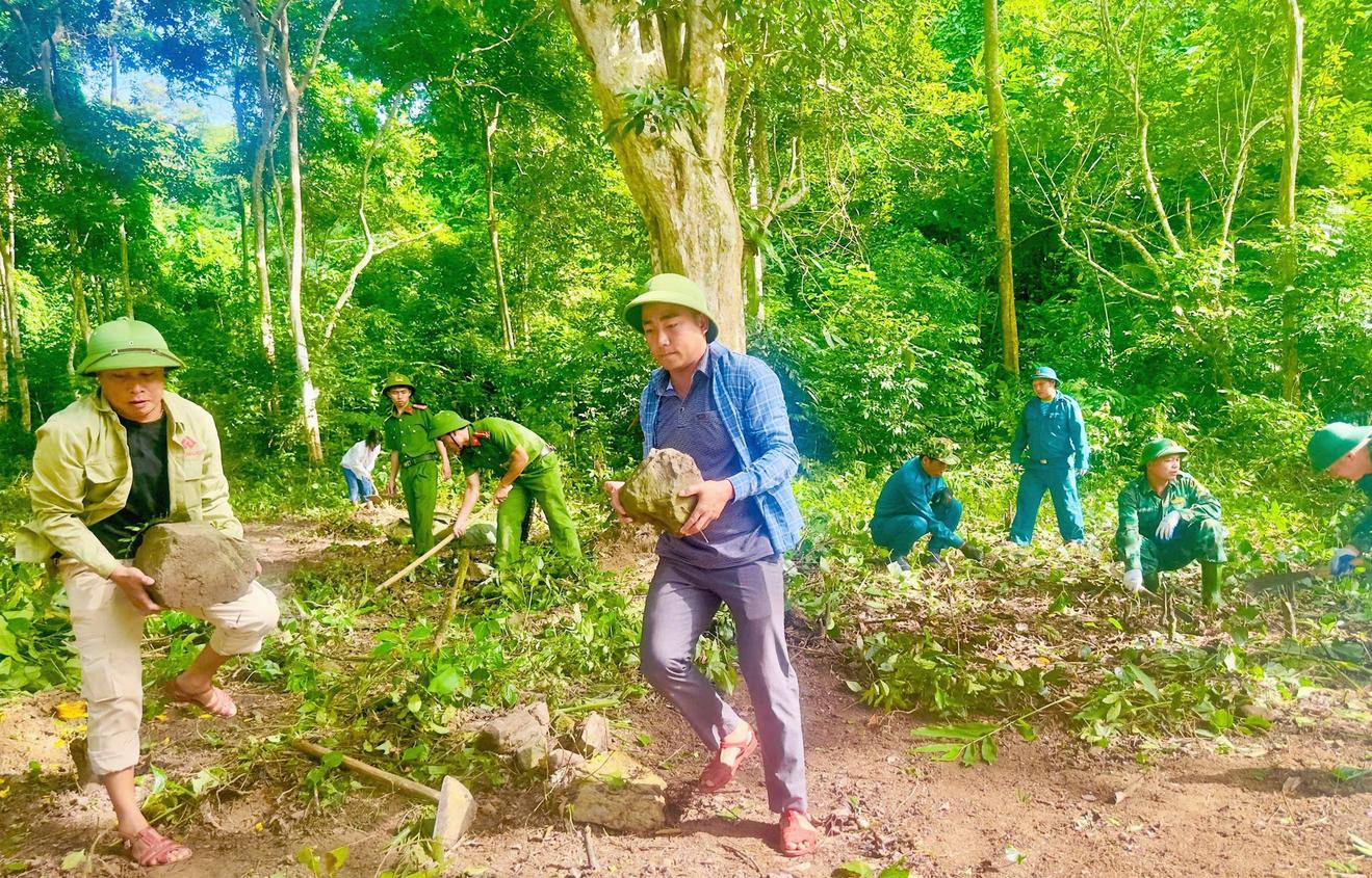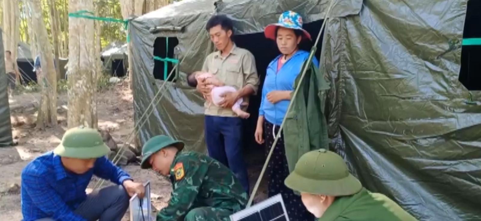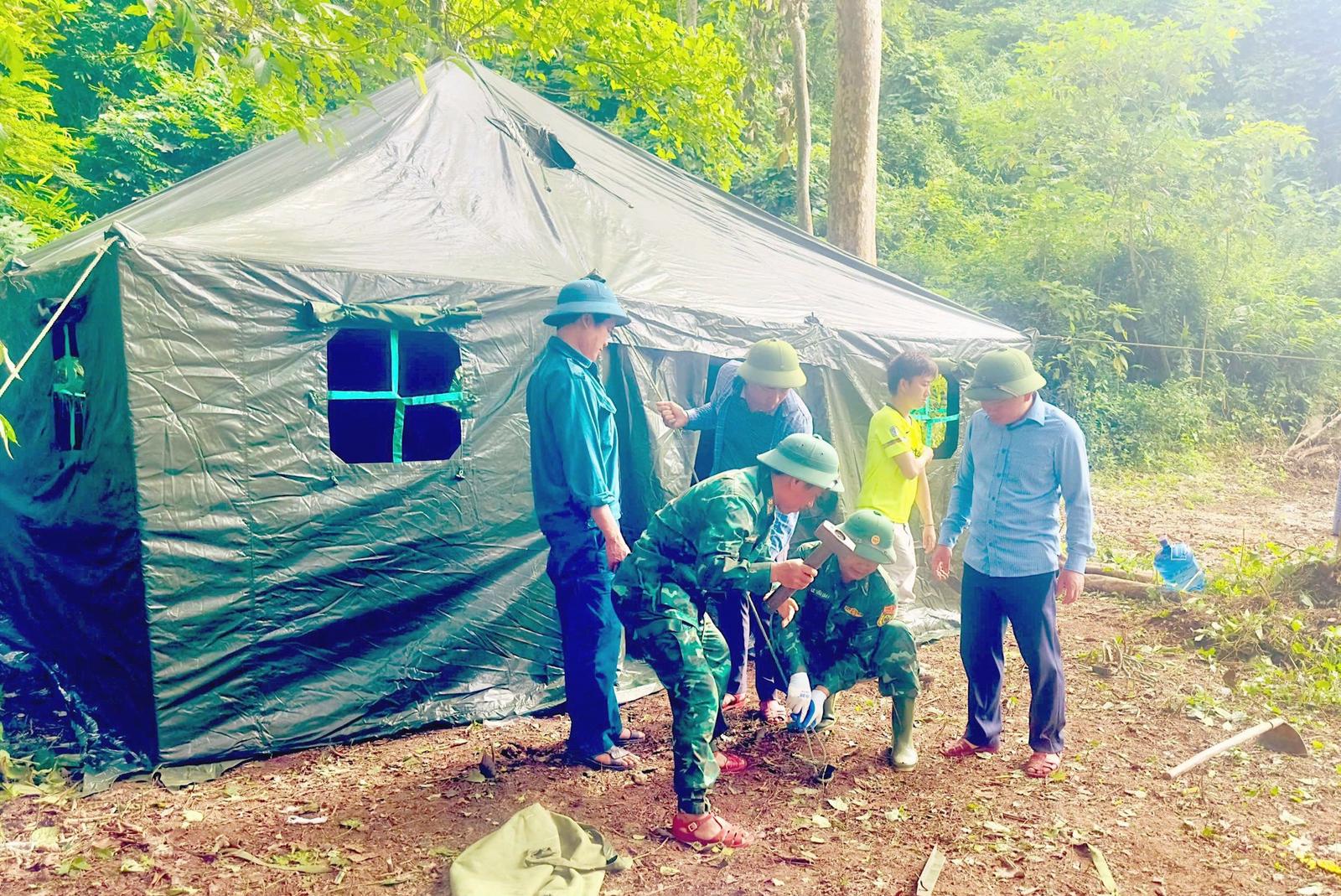 Nhờ sự hỗ trợ vật tư từ Bộ Chỉ huy Quân sự tỉnh, từ sáng 10/8, chính quyền và lực lượng “4 tại chỗ”, dân quân tự vệ, công an xã, đoàn viên thanh niên cùng bà con bắt tay dựng 30 nhà bạt. Địa điểm được chọn là khu đất bằng phẳng dưới tán cây rừng ở bản Na Hỷ, gần trung tâm xã, vừa an toàn vừa thuận tiện tiếp tế lương thực, nước sạch.