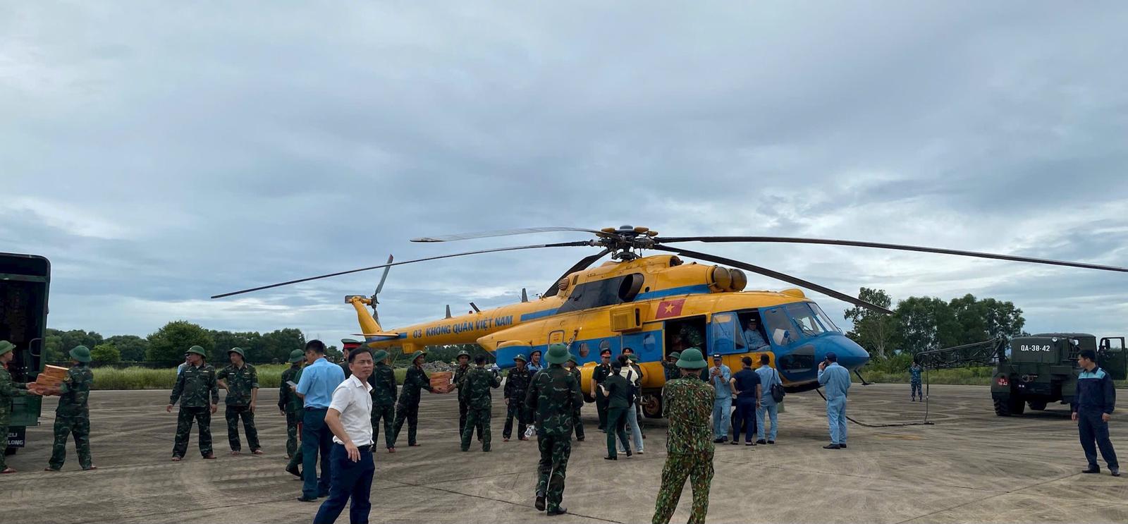 Ngay trong sáng 24/7, tại sân bay Vinh, hai chiếc trực thăng của Công ty Trực thăng Miền Bắc và Trung đoàn 916 đã cất cánh. Trên khoang là hàng chục tấn hàng hóa thiết yếu: Gạo, mì tôm, nước đóng chai, thuốc men, áo phao, dụng cụ y tế… được phân loại tỉ mỉ và đóng gói chắc chắn để thả xuống các điểm nóng đang bị cô lập nghiêm trọng.