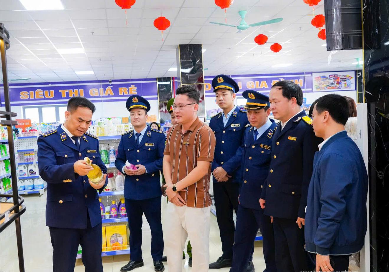 Lực lượng chức năng kiểm tra hàng tiêu dùng dịp Tế Nguyên đán Bính Ngọ ở Nghệ An. Ảnh: Thanh Lê