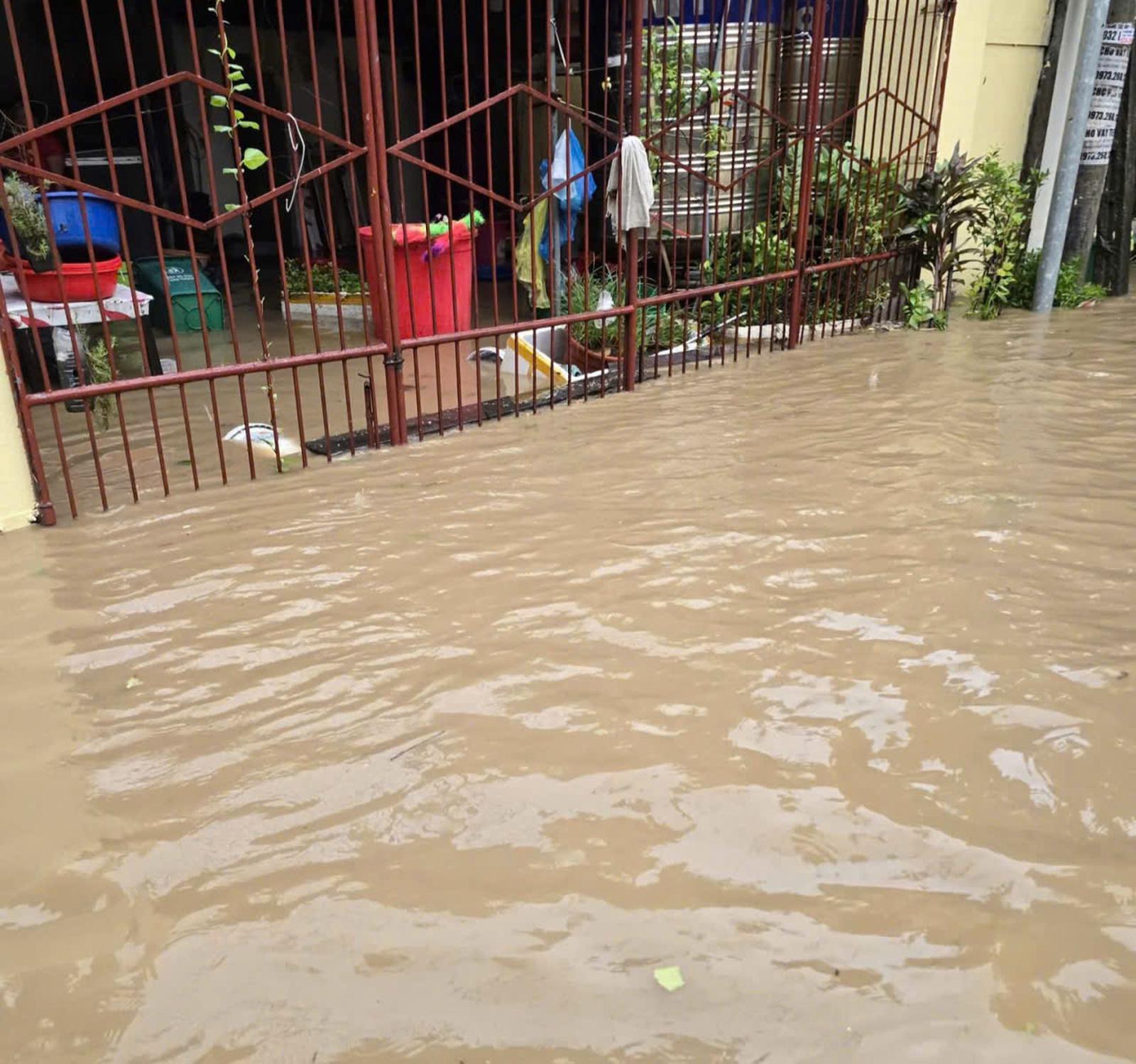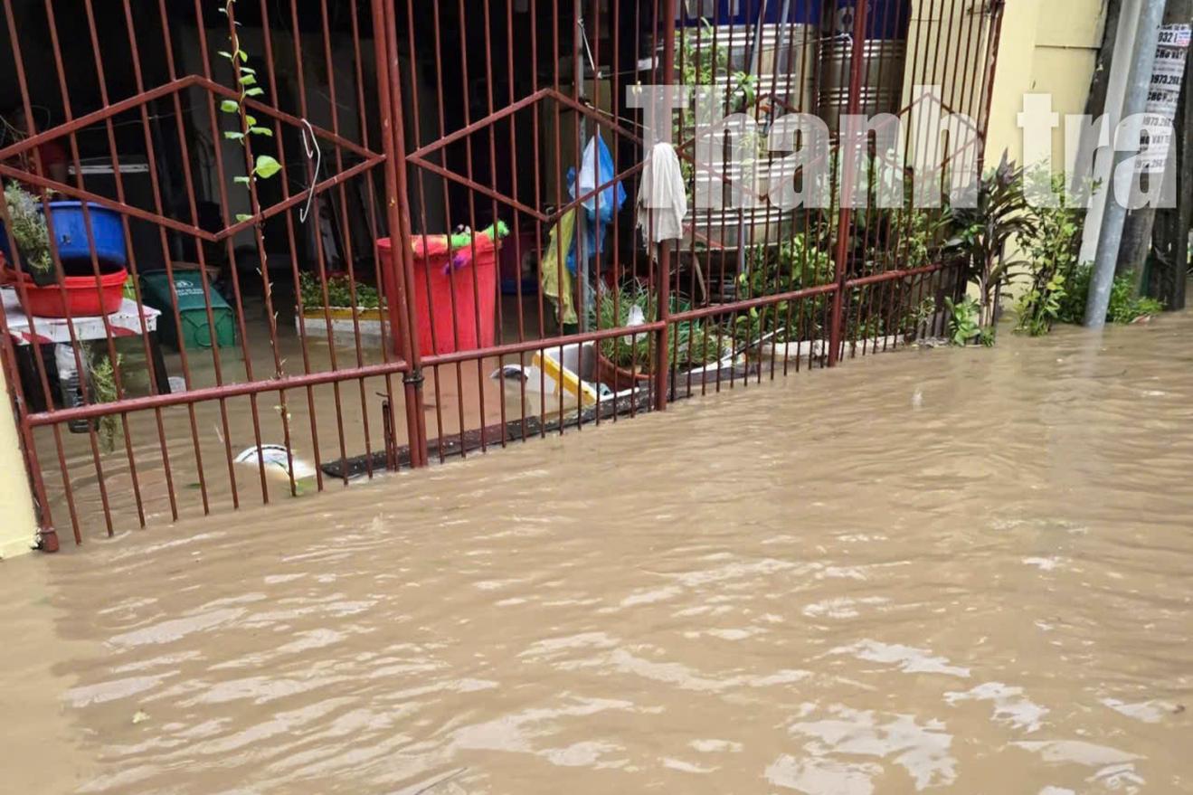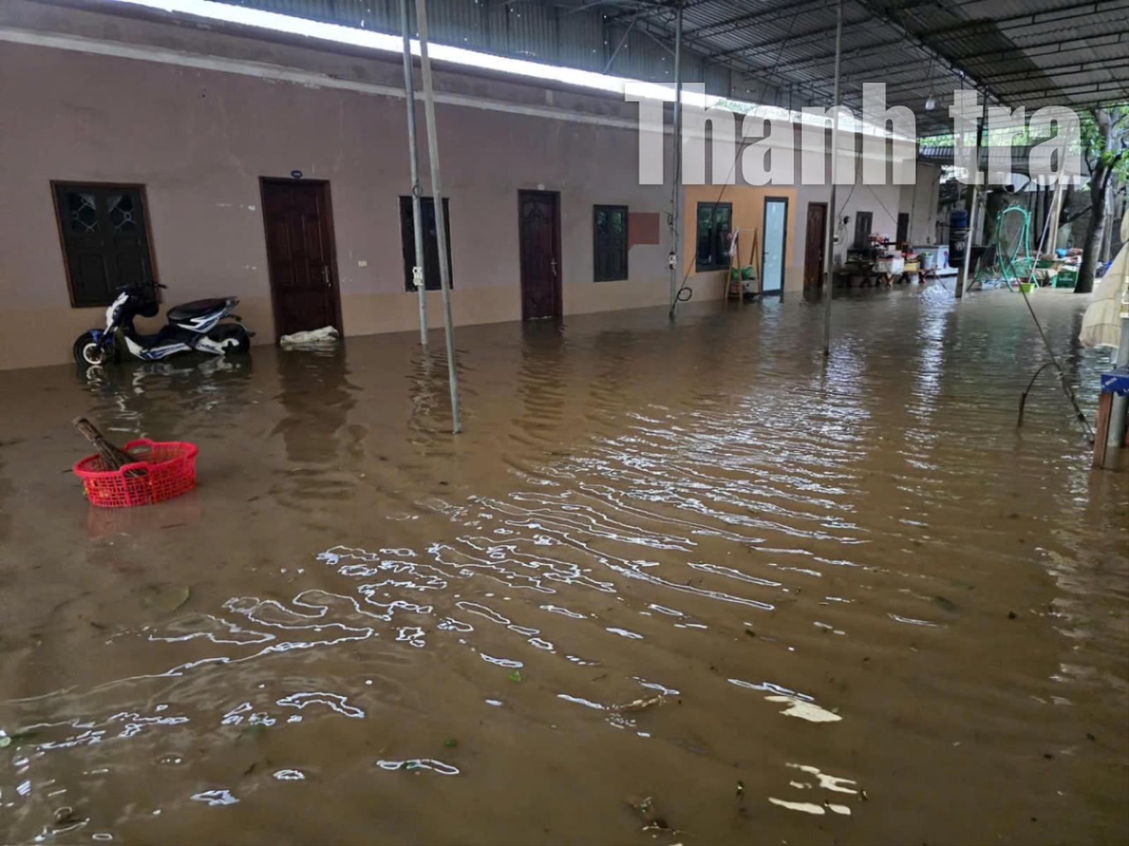 Nước tràn vào nhà dân do ảnh hưởng của bão số 5. Ảnh: Văn Thanh