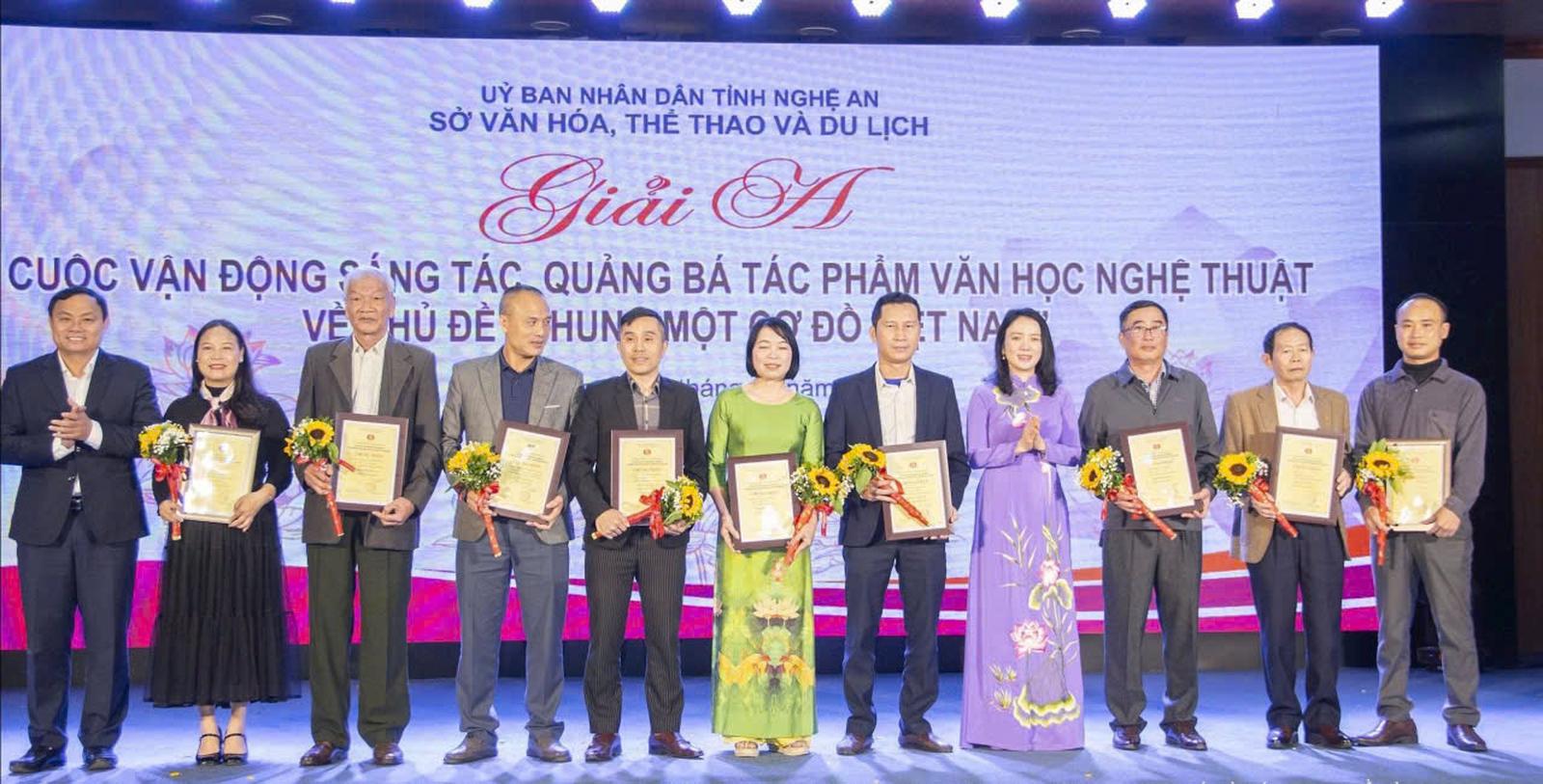 Trao giải A cho các tác giả tại Cuộc vận động sáng tác, quảng bá tác phẩm văn học nghệ thuật với chủ đè "Chung một cơ đồ Việt Nam". Ảnh: Diệp Thanh