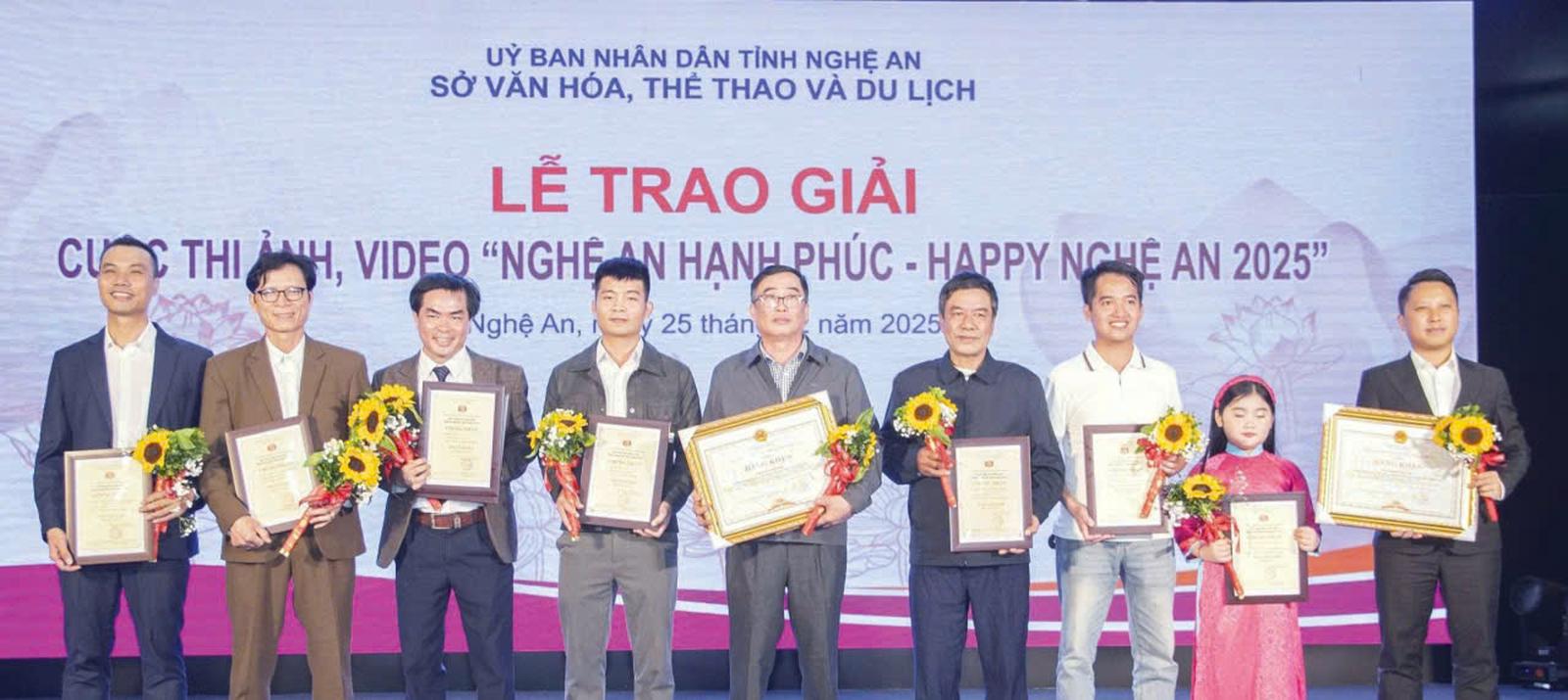 Trao giải cho các tác giả Cuộc thi ảnh, video "Nghệ An hạnh phúc - Happy năm 2025". Ảnh: Diệp Thanh